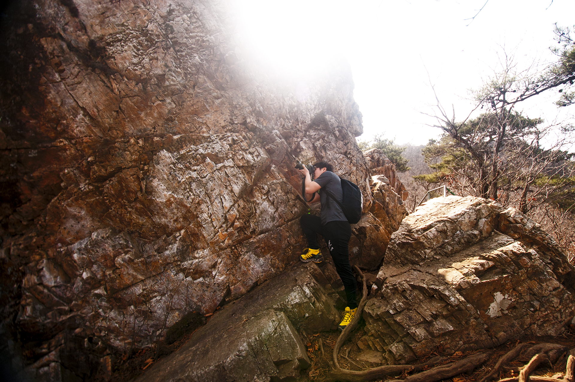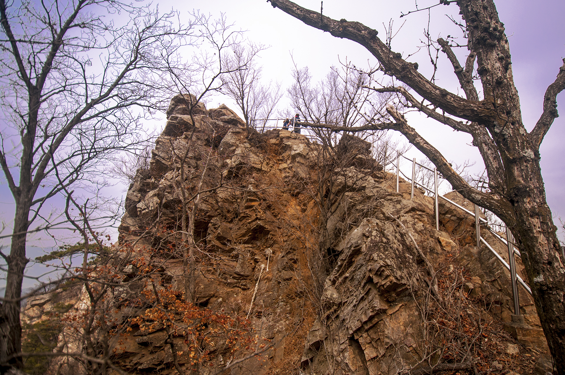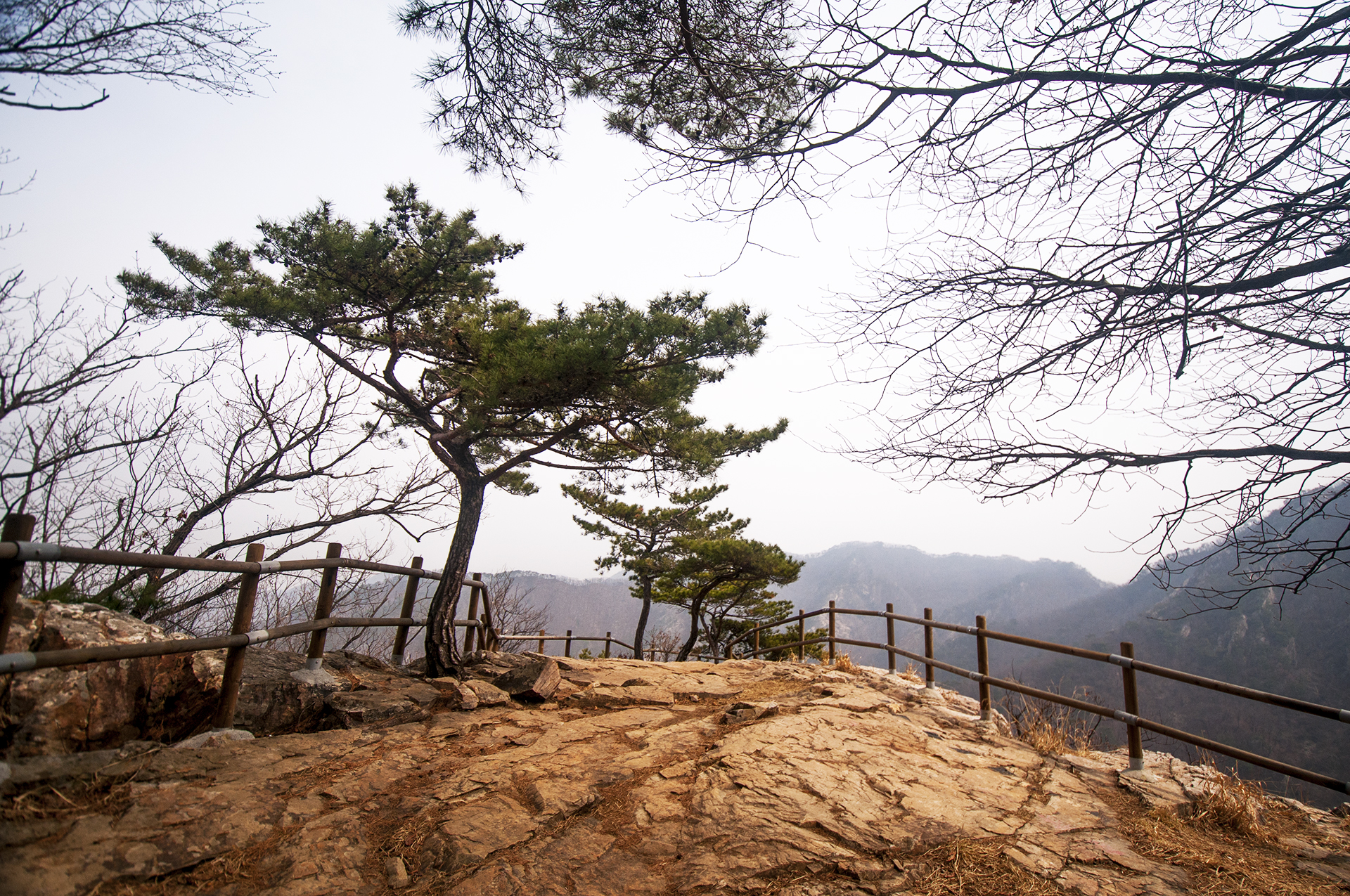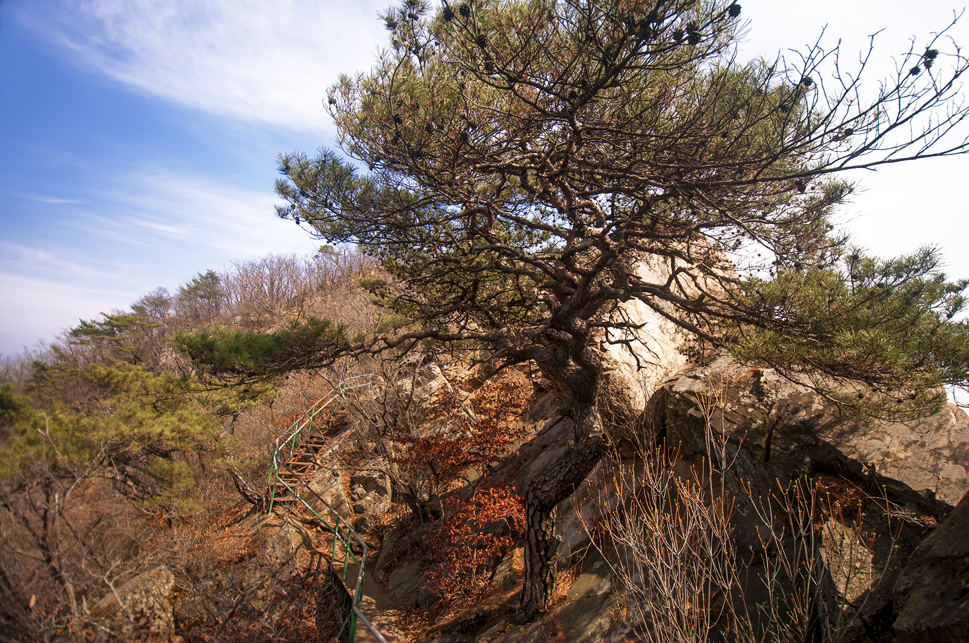 바위 끝부분에서 자라고 있는 소나무가 멋진 경관을 만들어준다.