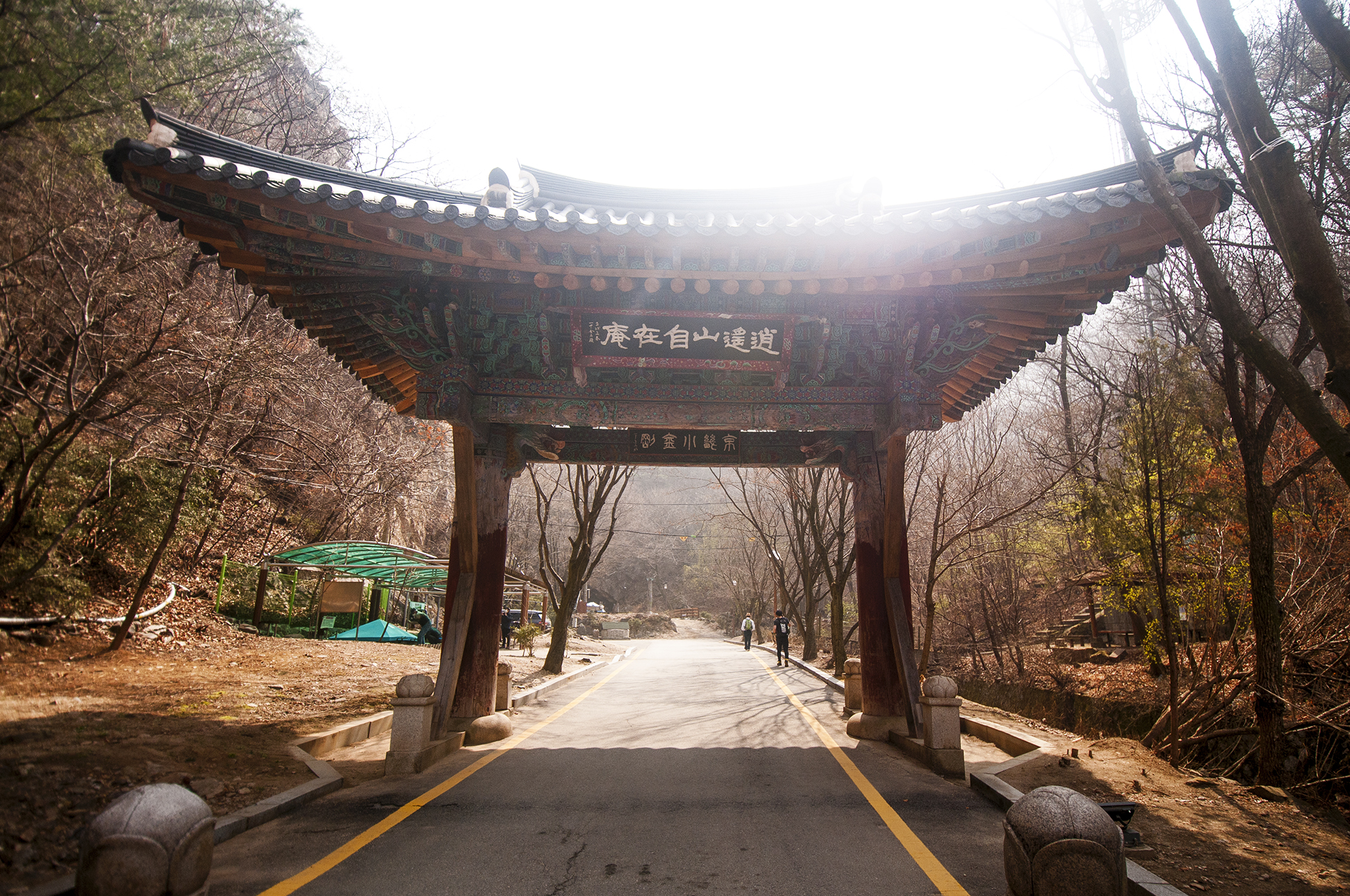 멋스럽게 서있는 자재암 일주문을 통과하면