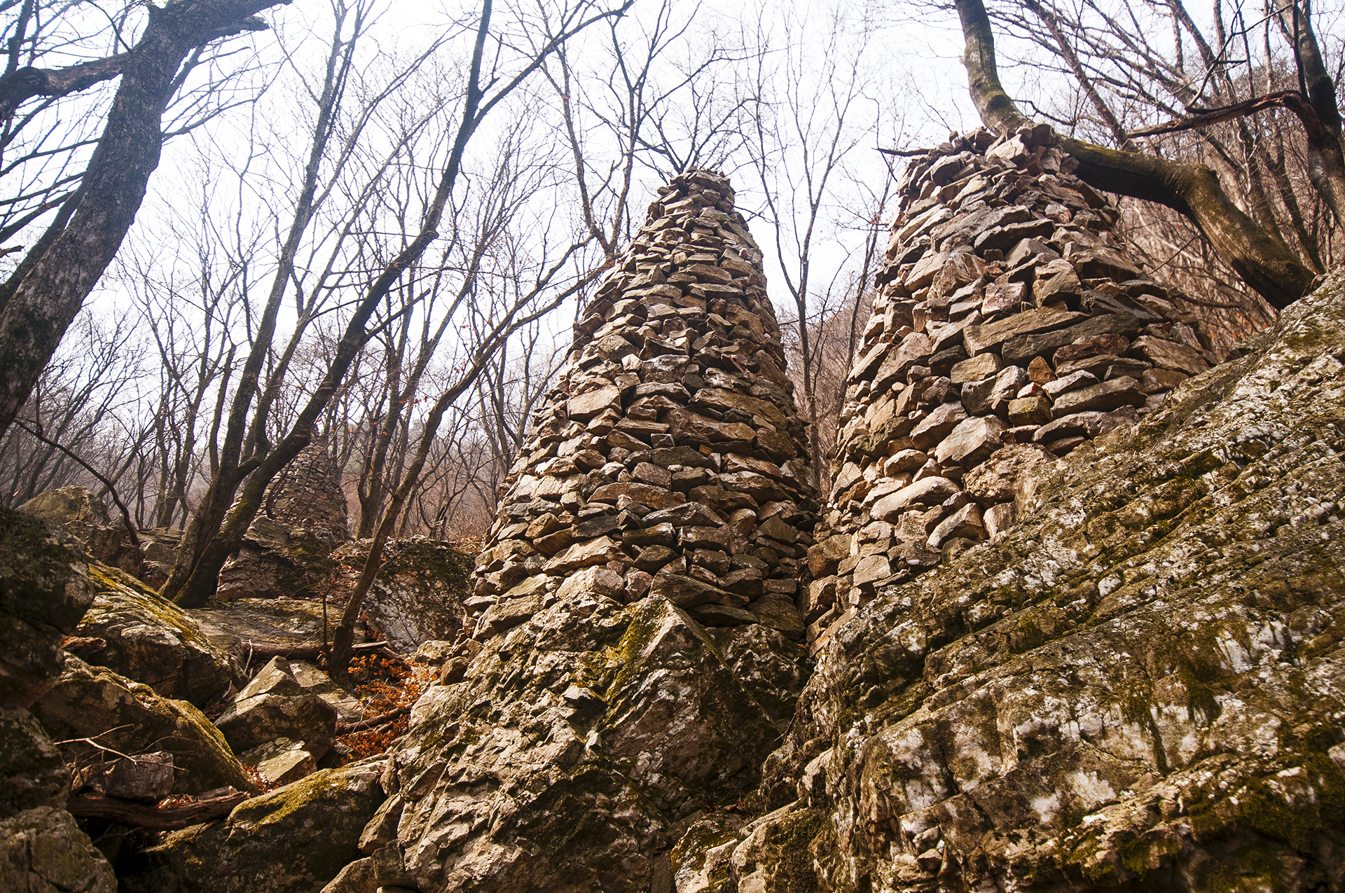 정교하게 쌓아놓은 거대 돌탑들이 세워져 있다.