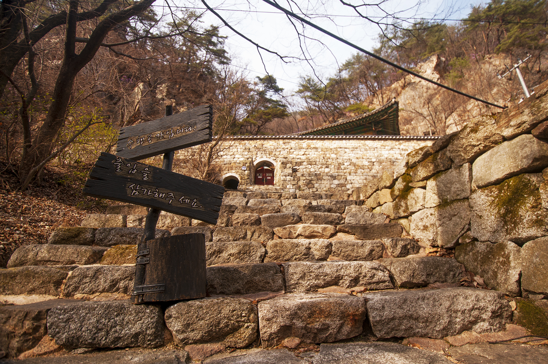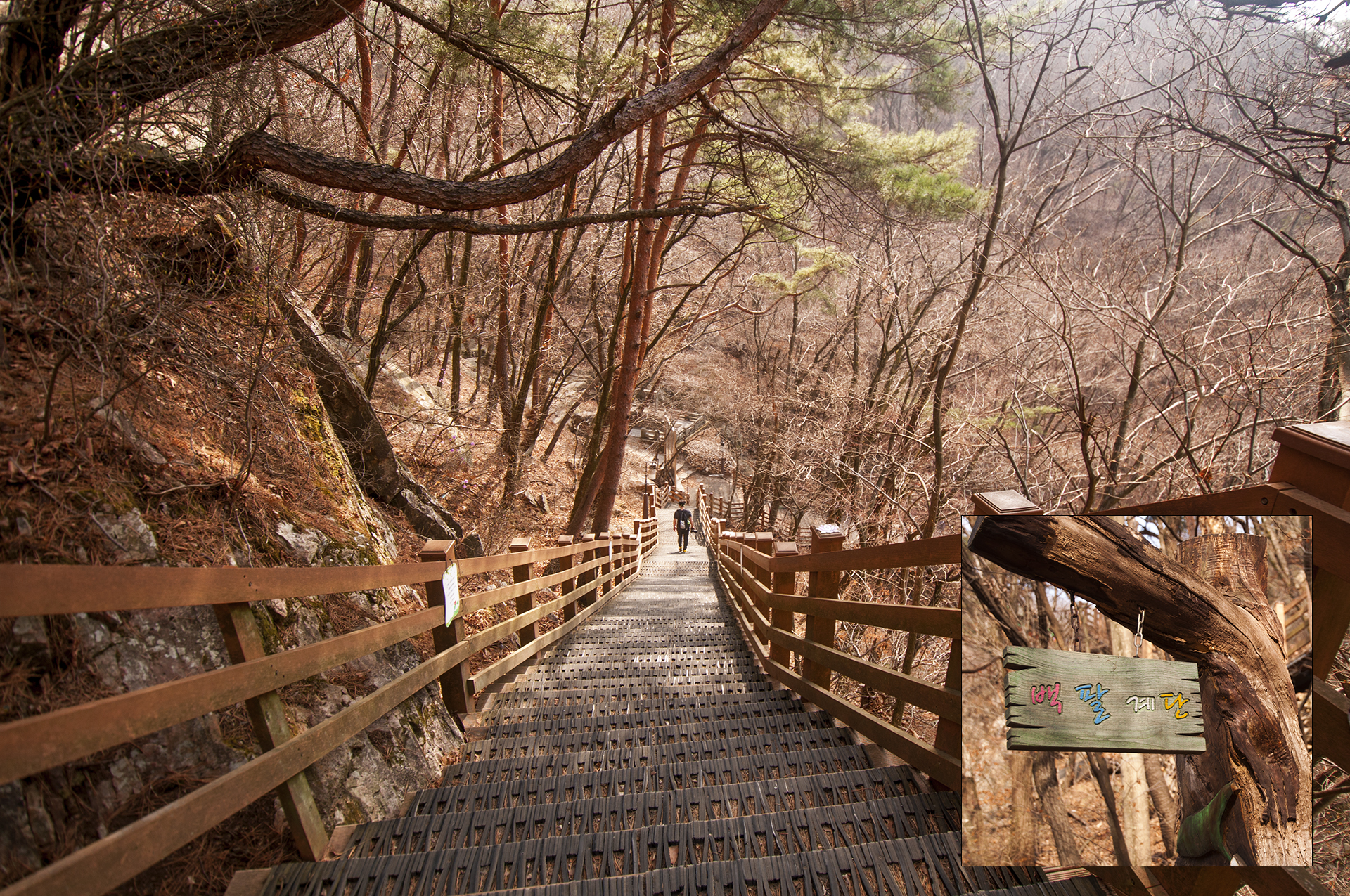 잠시후 자재암 방향은 백팔계단을 올라야 한다.