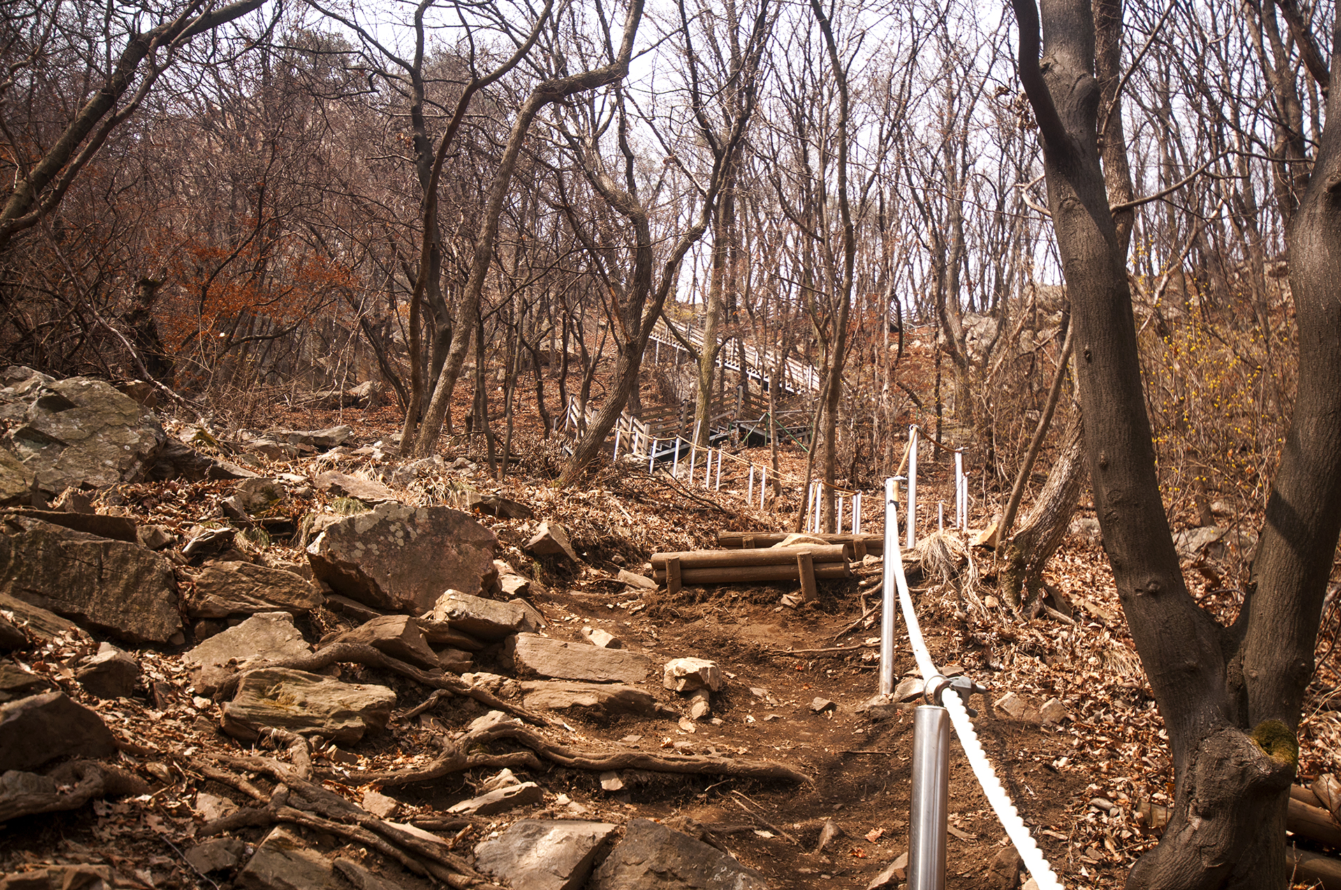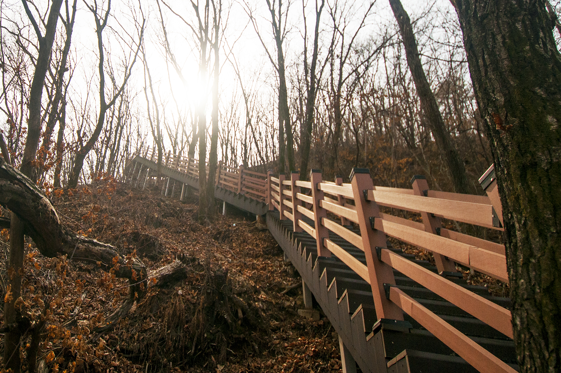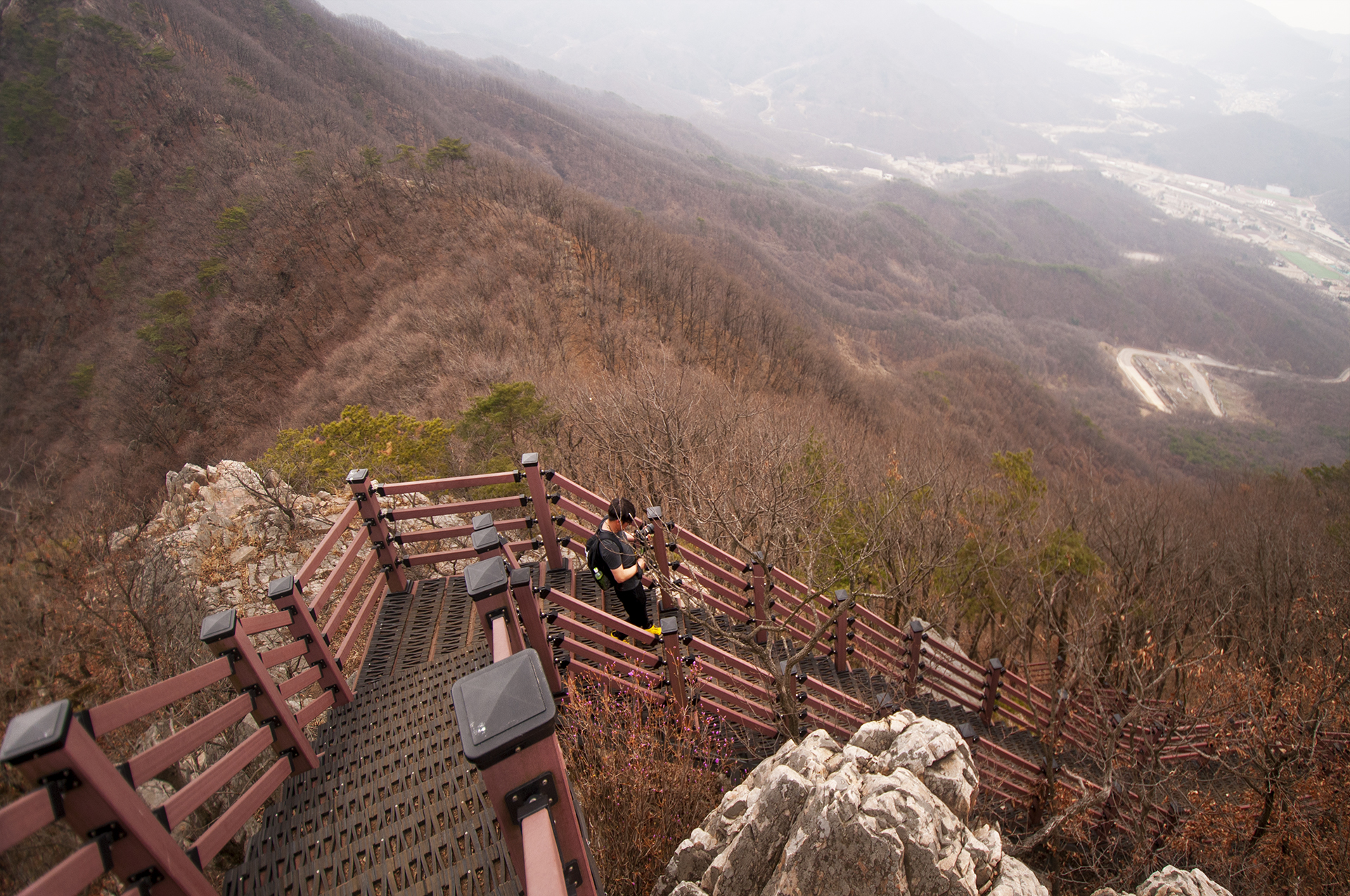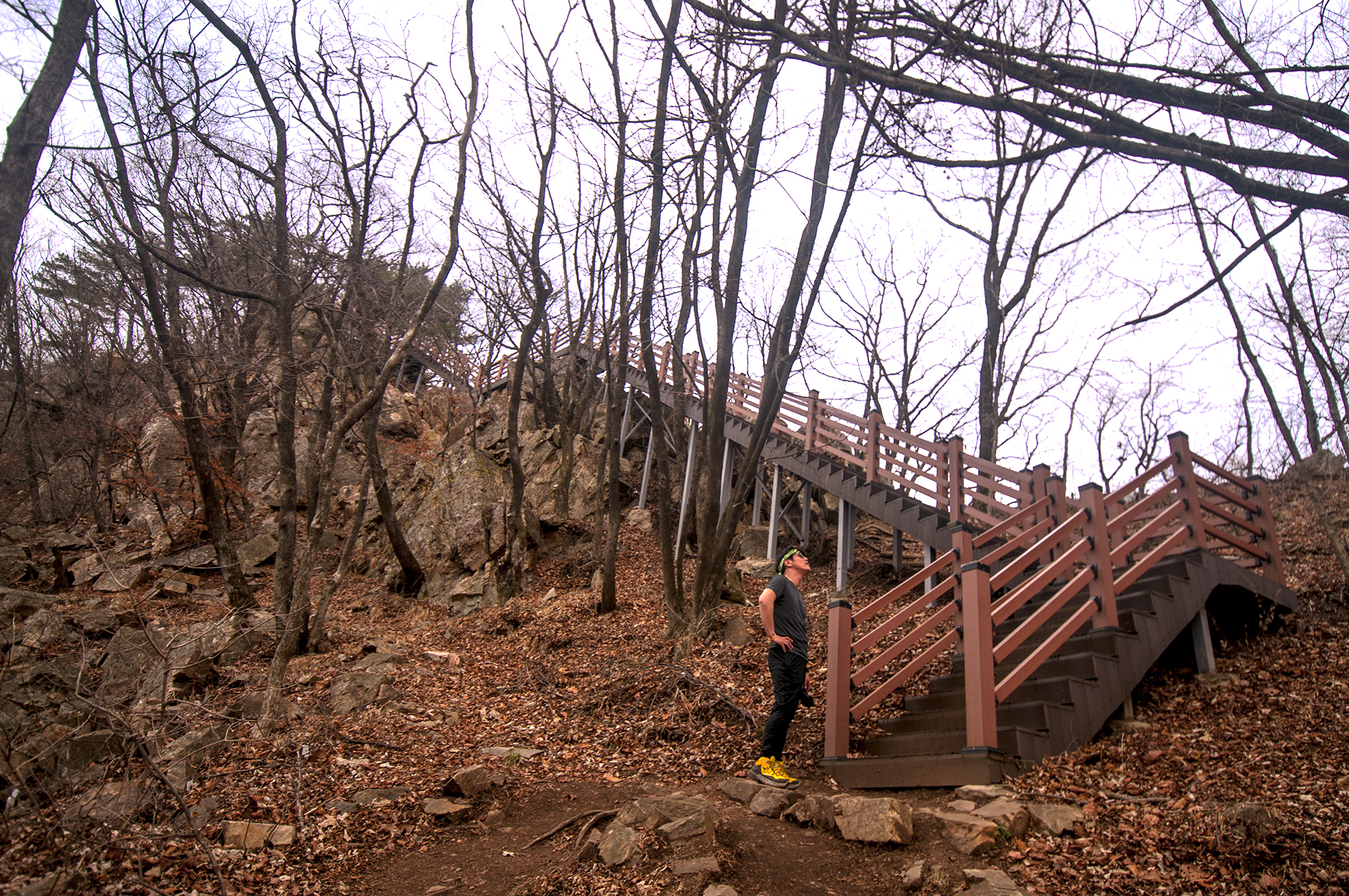 저 위쪽에 지그재그로 만들어진 계단을 올라가면