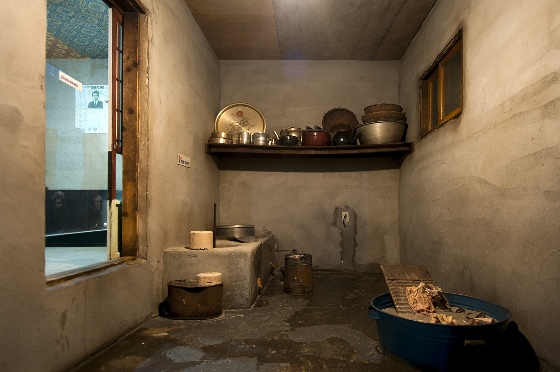 부엌에는 때에 찌든 빨래들이 물에 담겨있고