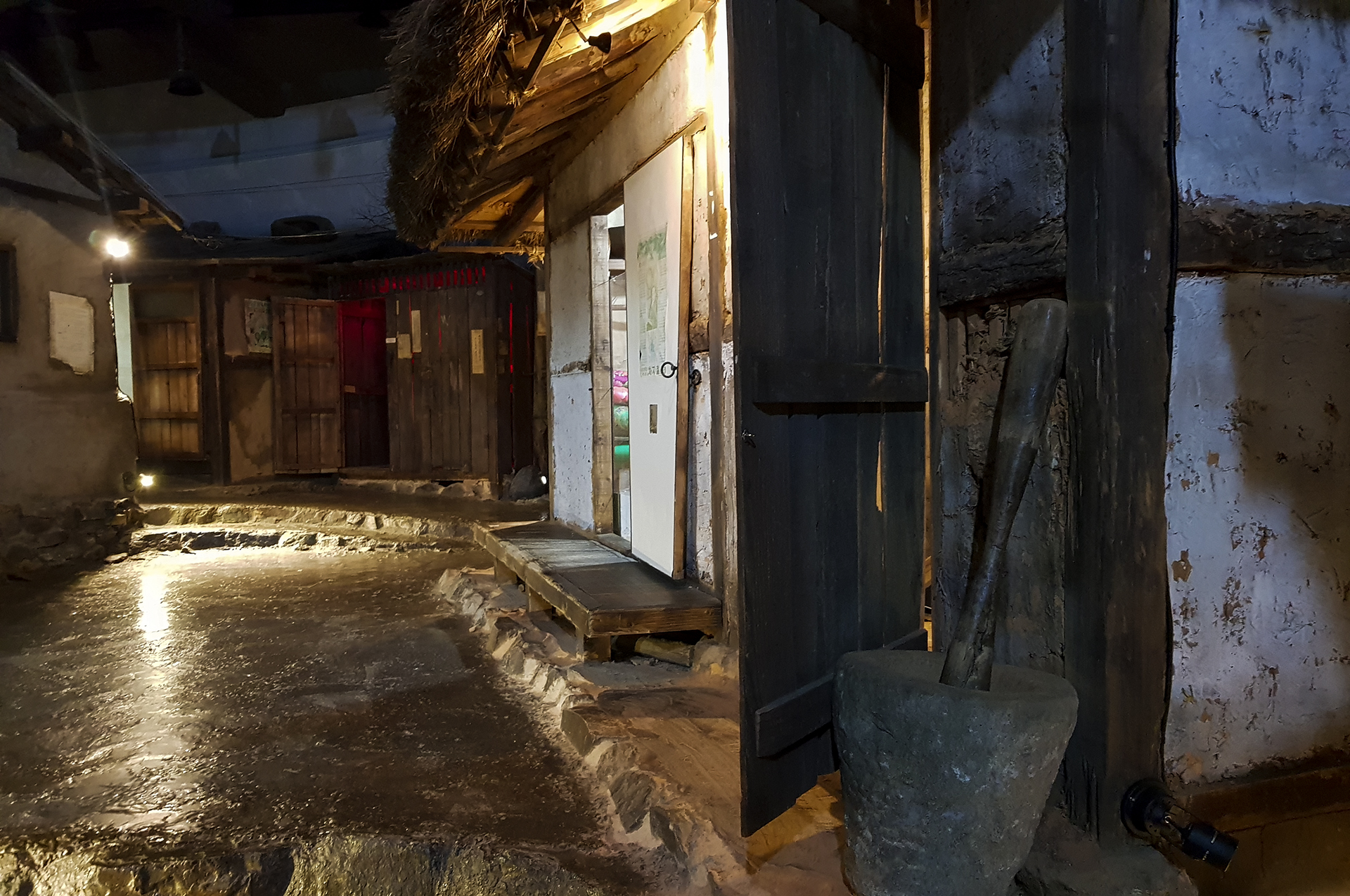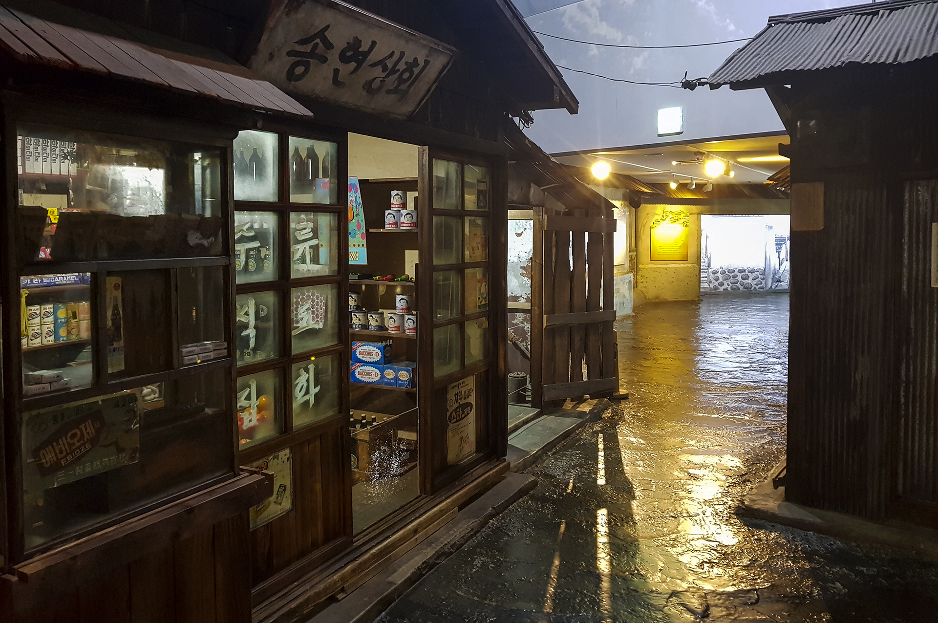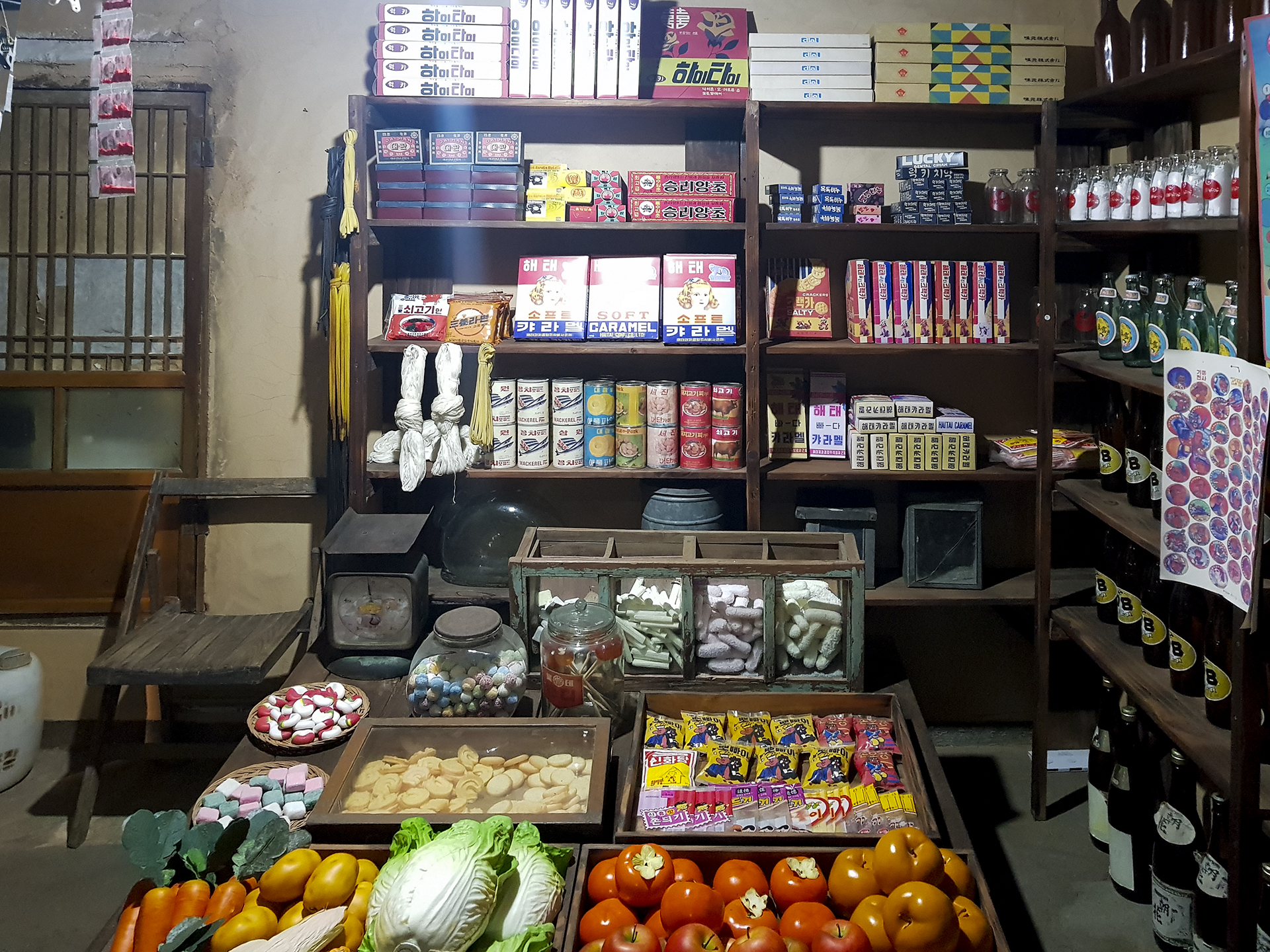 초가집은 전형적인 일자 구조로 창문을 개조하여 점방 형태를 갖추었다.