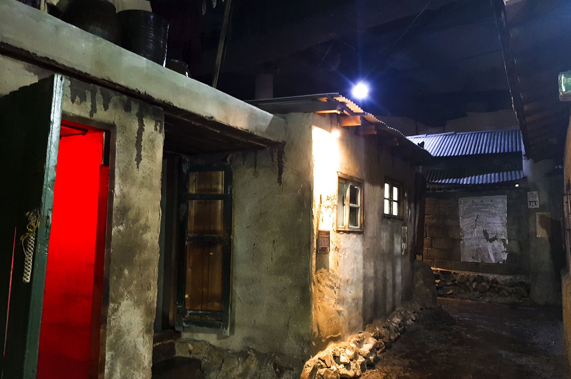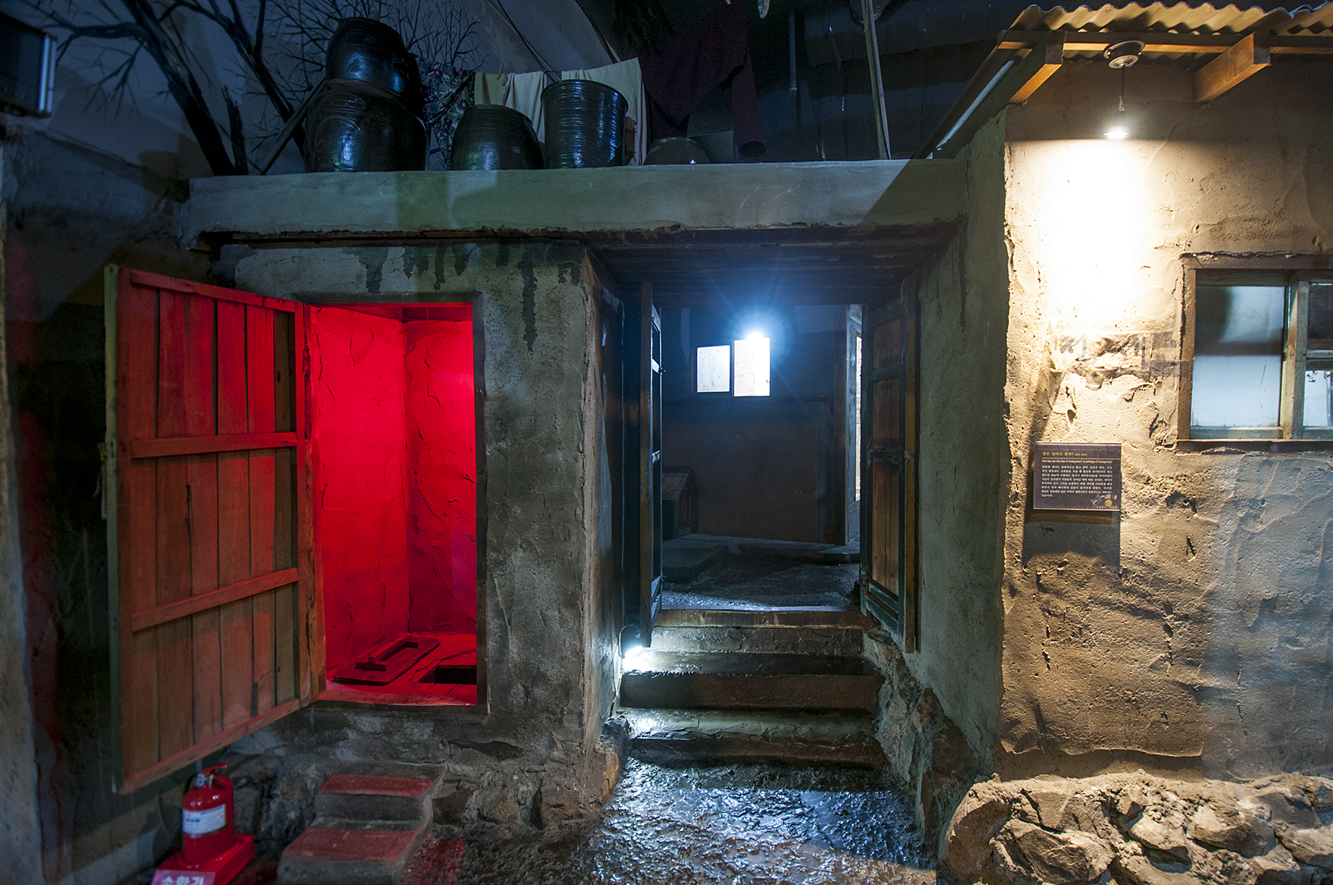 붉은 전구를 장착한 변소(화장실)이 있는 집이다.