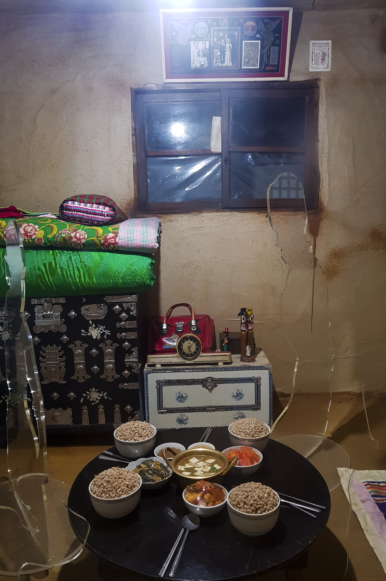 문 위에 걸린 조상의 사진이 눈에 띈다.