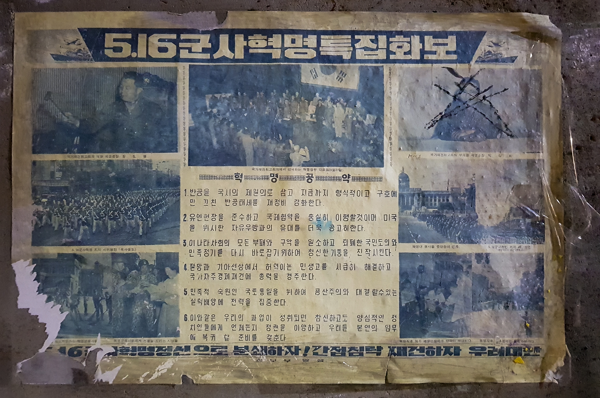 담장에 5.16 군사혁명 특집화보가 붙어있다.