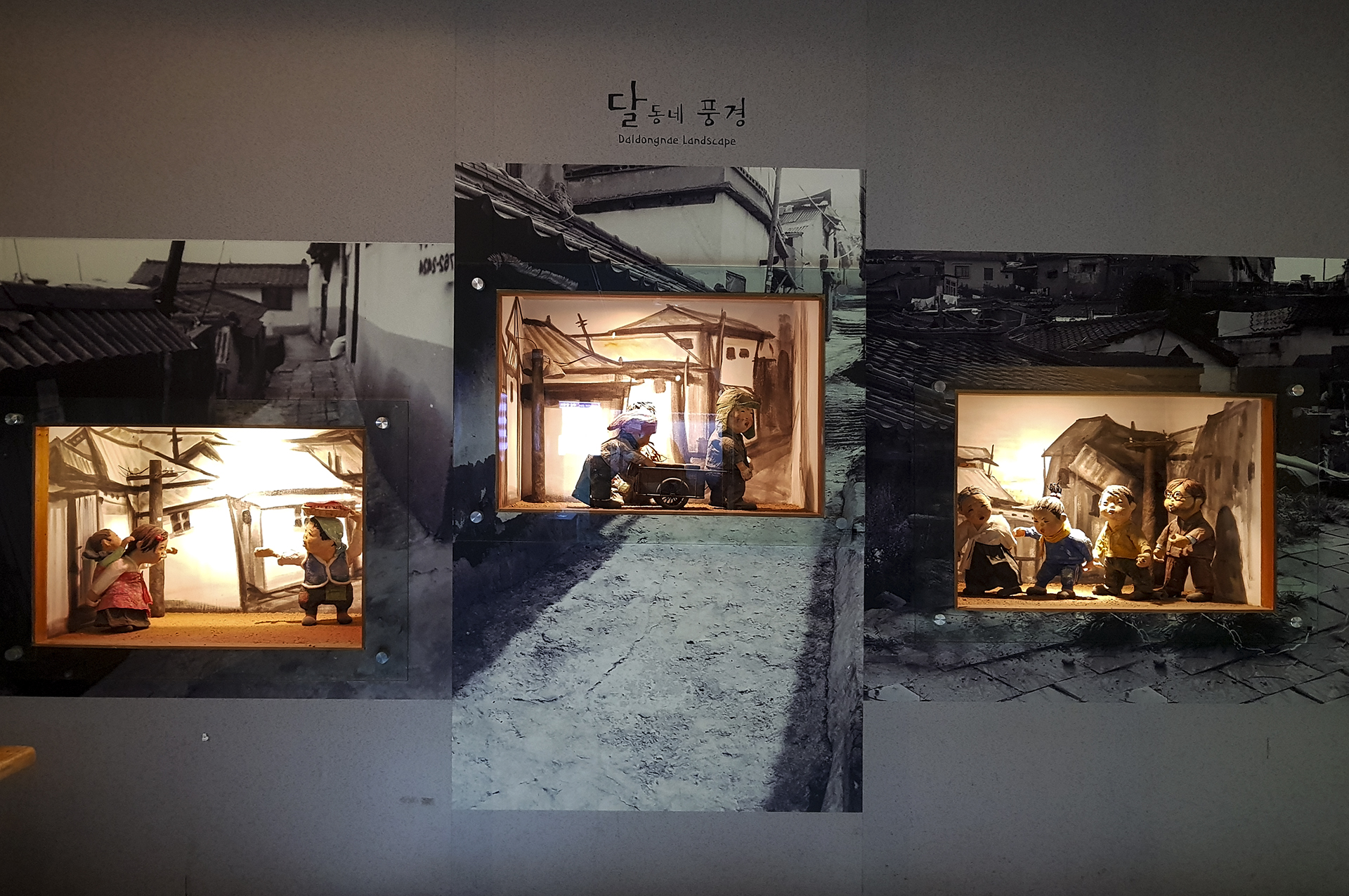 달동네 풍경을 만들어 놓은 닥종이 인형
