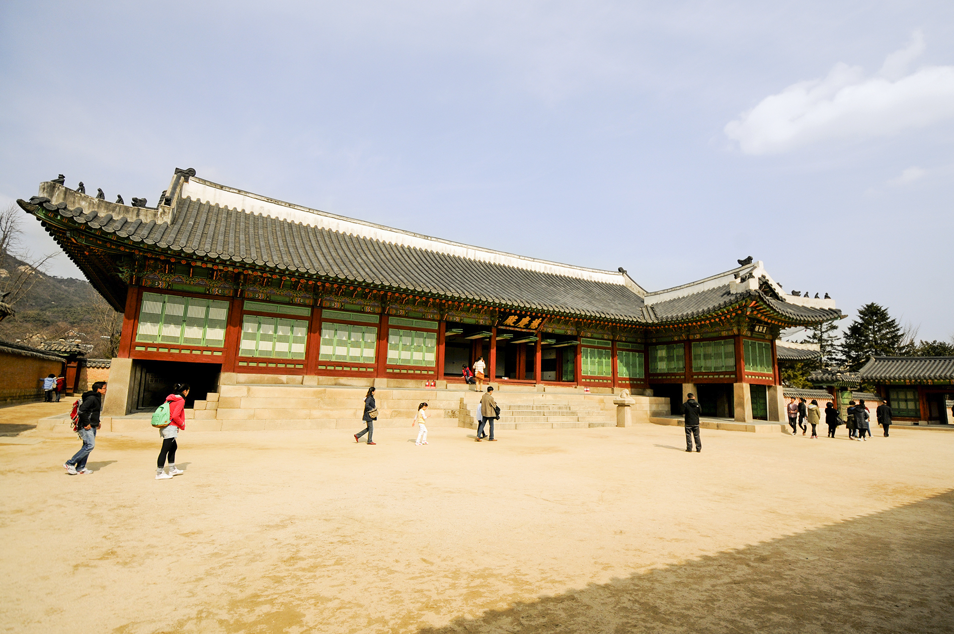 안으로 들어가 보면 기단의 높이가 자경전 보다는 낮고, 지붕의 용마루 또한 높이를 낮게하여 자경전보다 격식을 낮추었다.