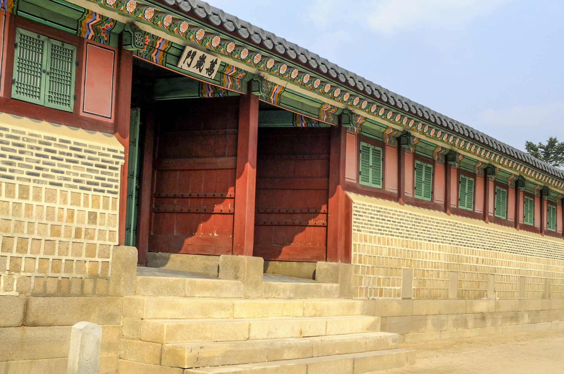 자경전의 정문인 만세문이 있는 남쪽행각 안쪽은 담장이 아닌 유일하게 작은 방들로 이루어져 있다. 서쪽으로 담장과 이어지기 전까지는 방들이 있긴하지만, 이렇게 행각보다 담장의 비중이 더 큰걸 알 수 있는데, 궁녀로 북적대는 것보다는 조용하게 여생을 지내라는 마음 씀씀이라고 한다. 행각 중간에 나가는 곳이 바로 만세문이다.