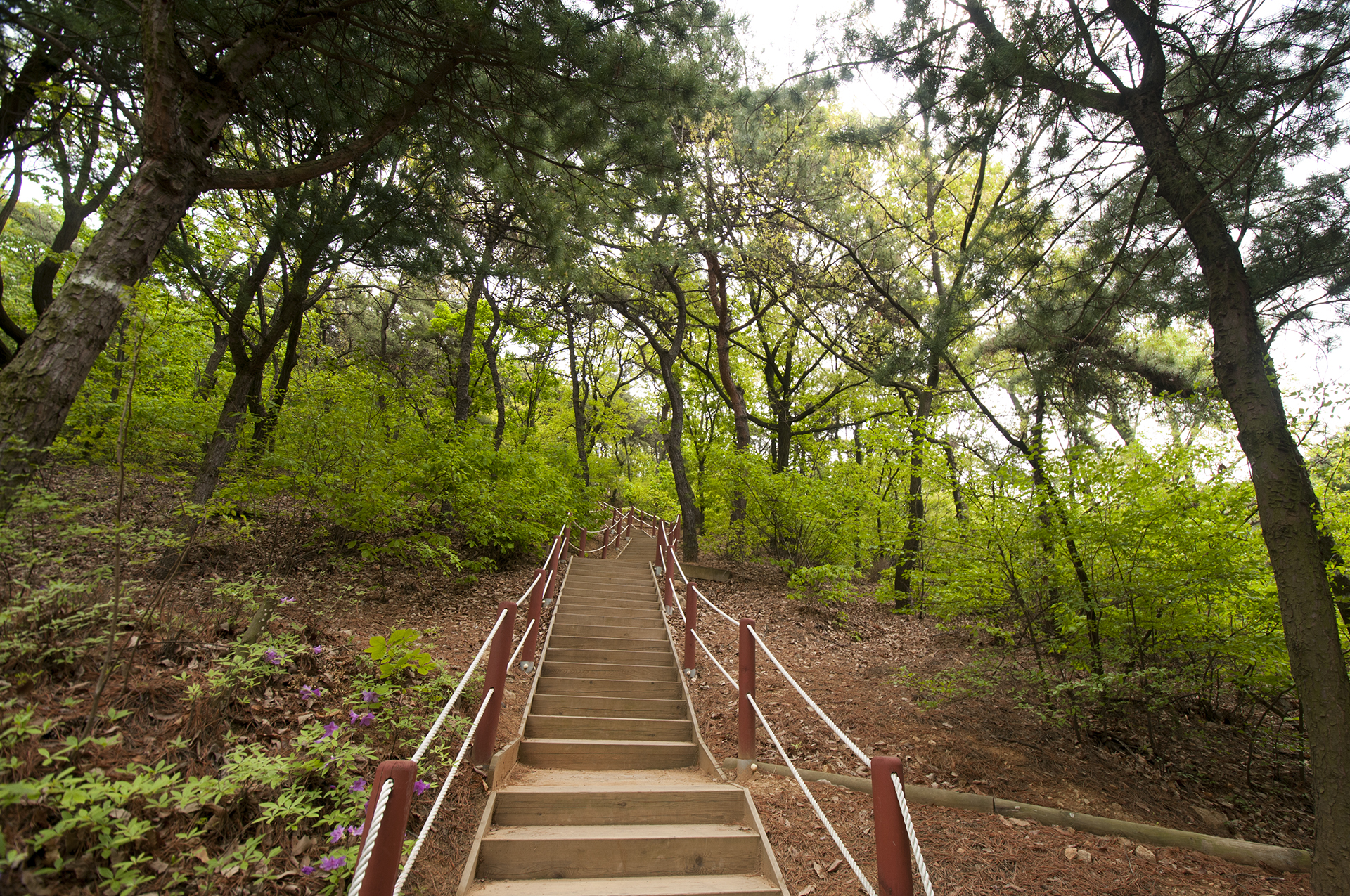 이 가파른 계단으로 가면 바로 팔각정까지 갈수 있지만 오늘은 천천히 숲을 느껴볼까 한다.