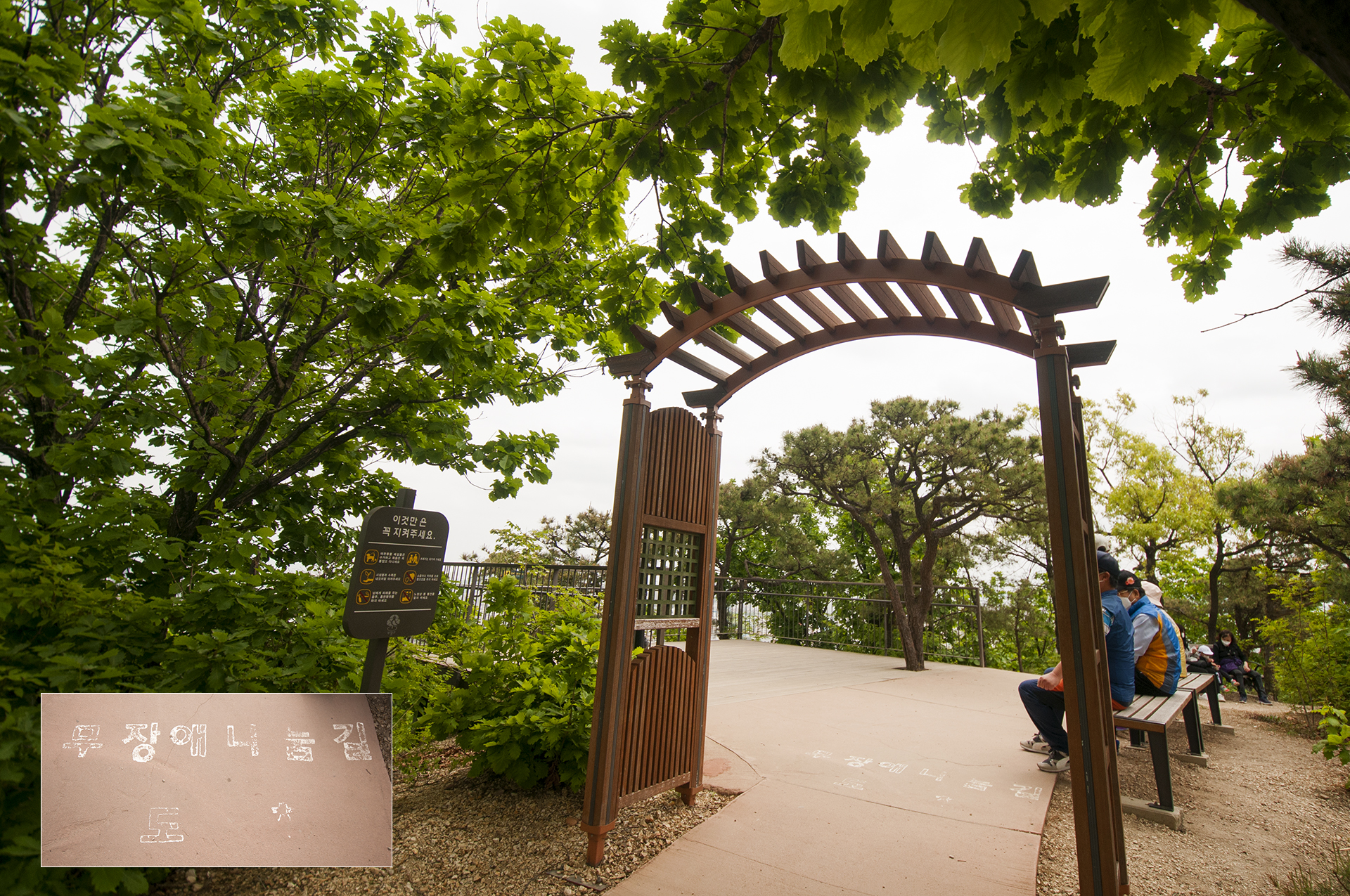 바닥에 "무장애나눔길 도착" 이라는 글이 씌어져 있는 이곳이 전망대라고 한다.