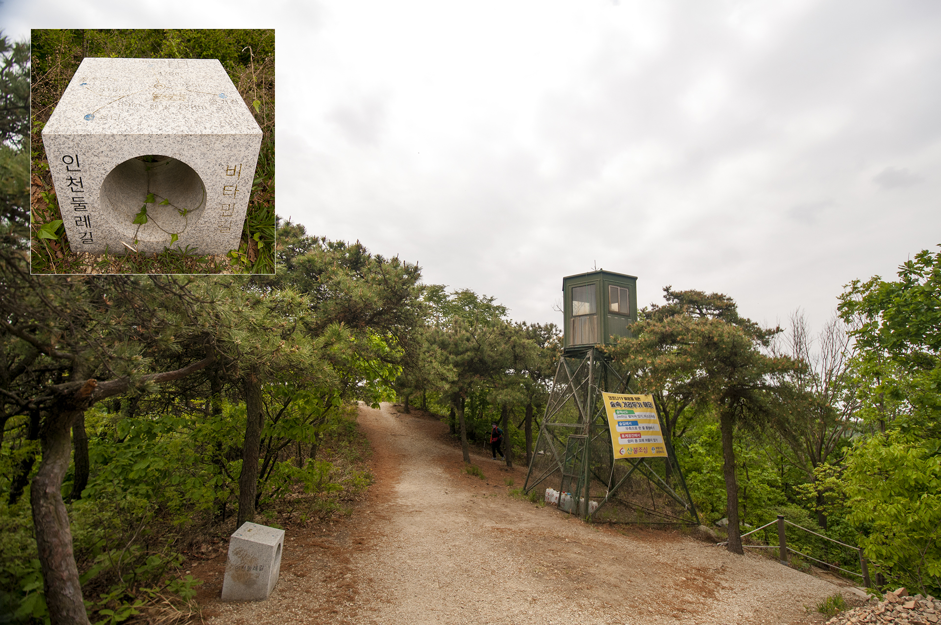 바로 초소가 나오고 인천둘레길 표지석이 있다. 비타민길과도 겹치는 구간이다.