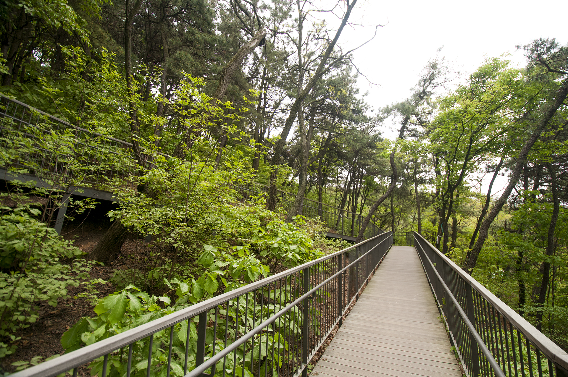 지그재그로 이어지는 무장애숲길, 여기서부터는 데크로드가 펼쳐진다.