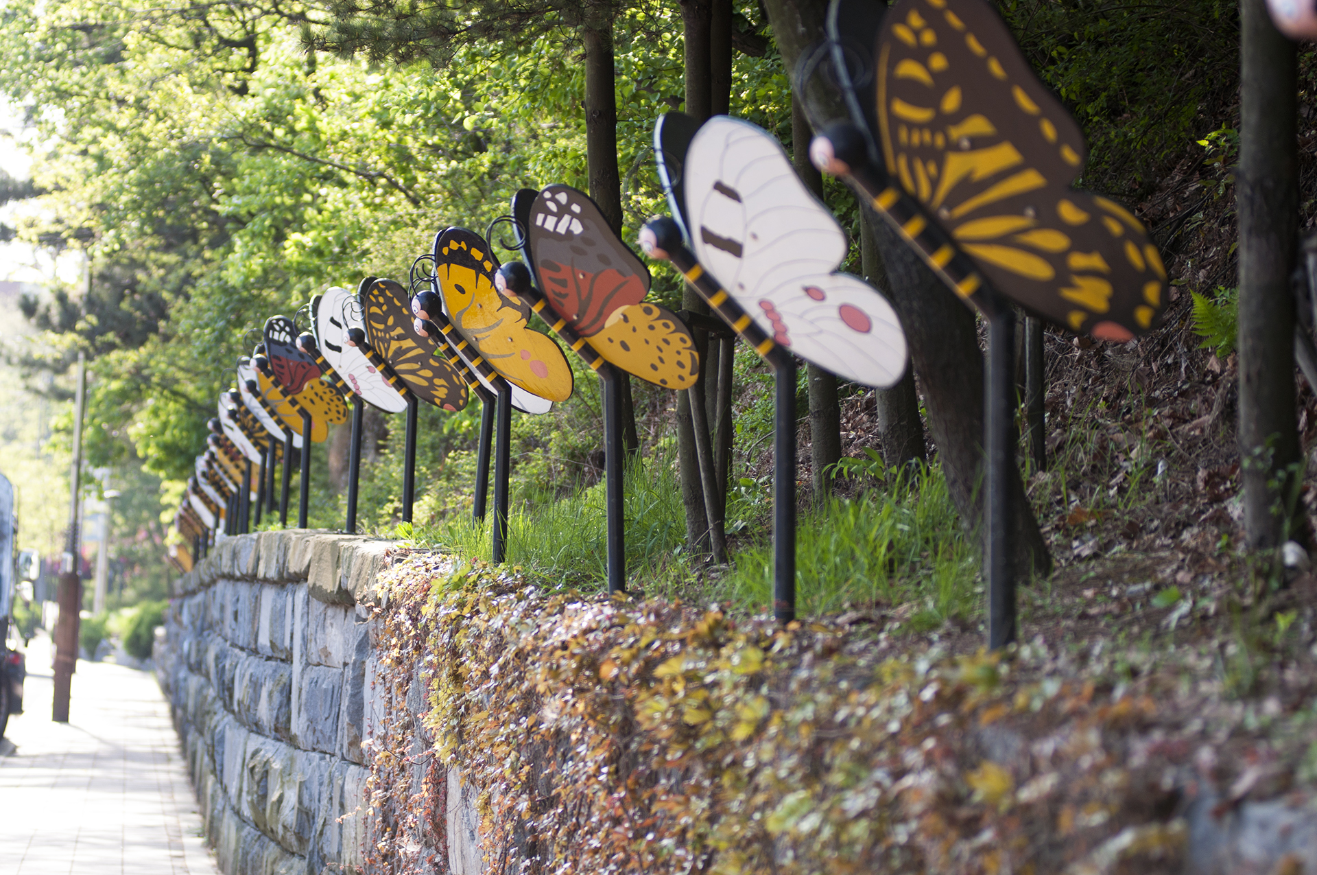 나비공원으로 가는길에 조성된 나비 조형물들
