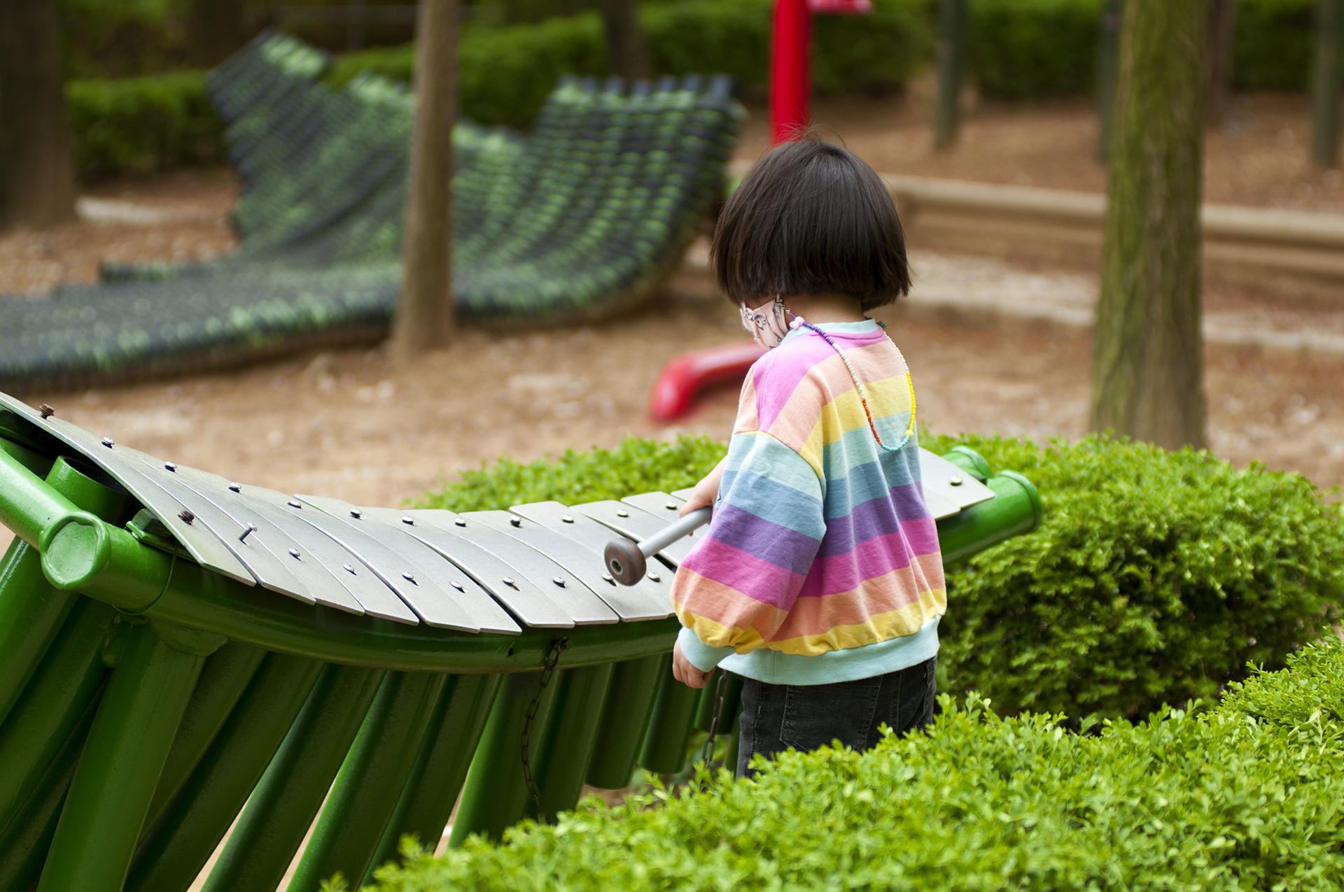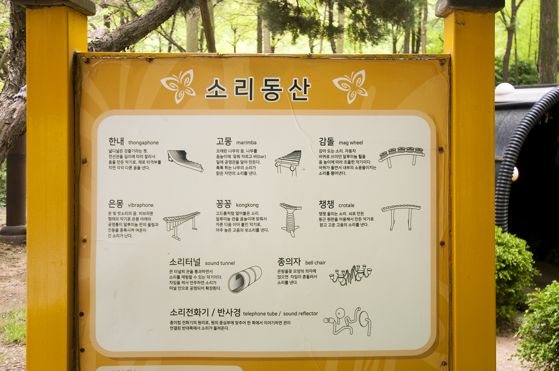 소리터널로 내부 윗쪽에 차임이 달려있어 지나가면서 건들면 짤랑짤랑 소리가 난다.