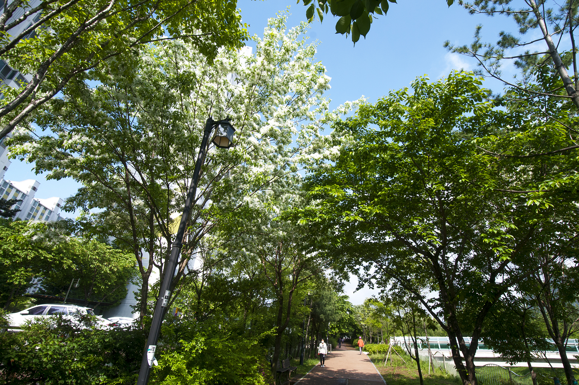 부평둘레길을 완주한 뒤에 건너편 길을 걸어 원점으로 돌아오게 된다. 이팝나무 꽃이 활짝 피었다.