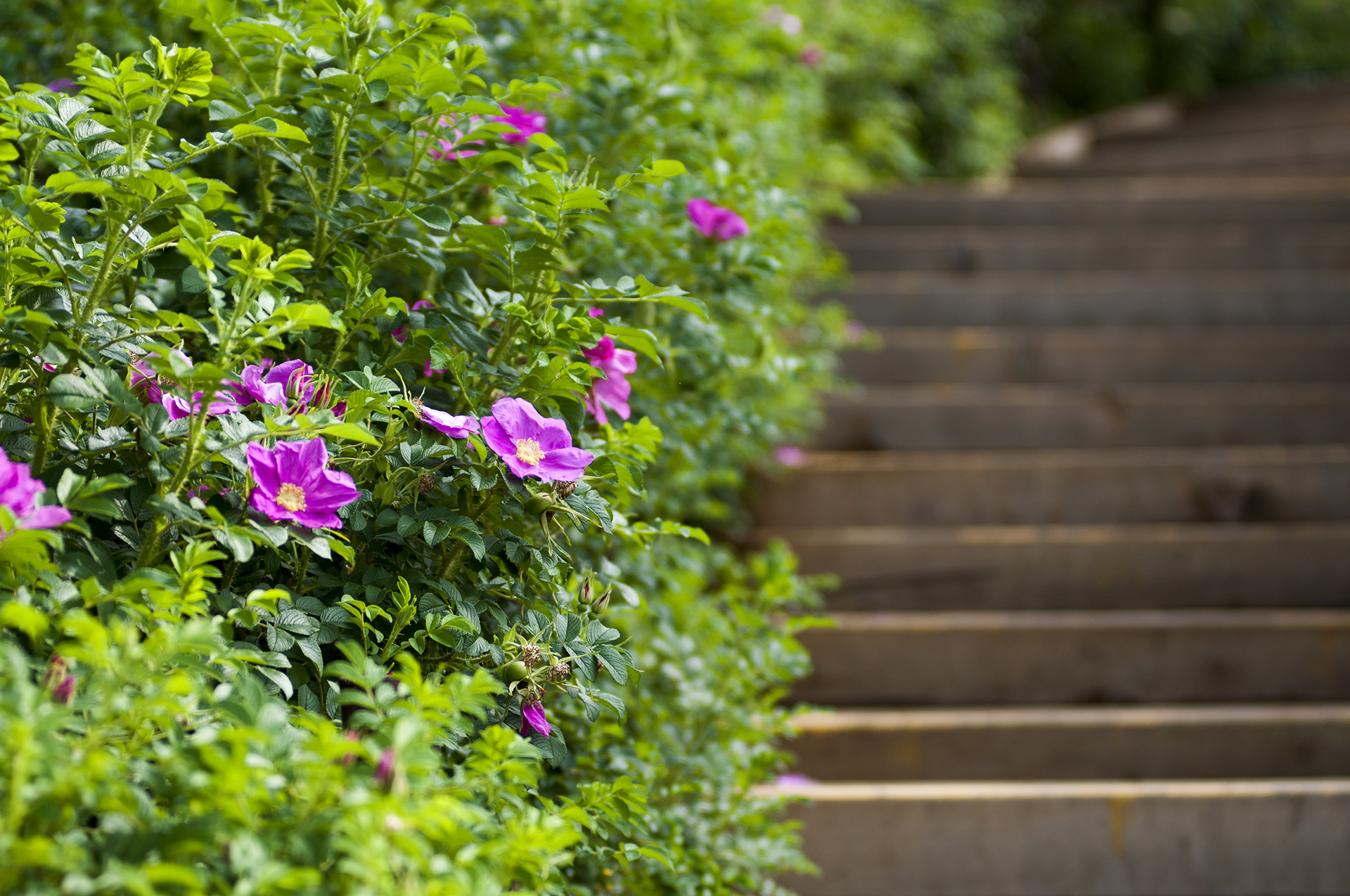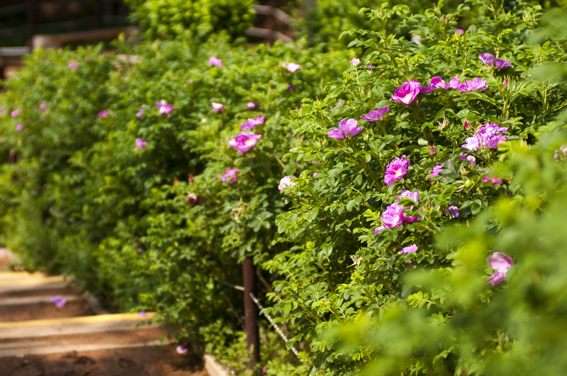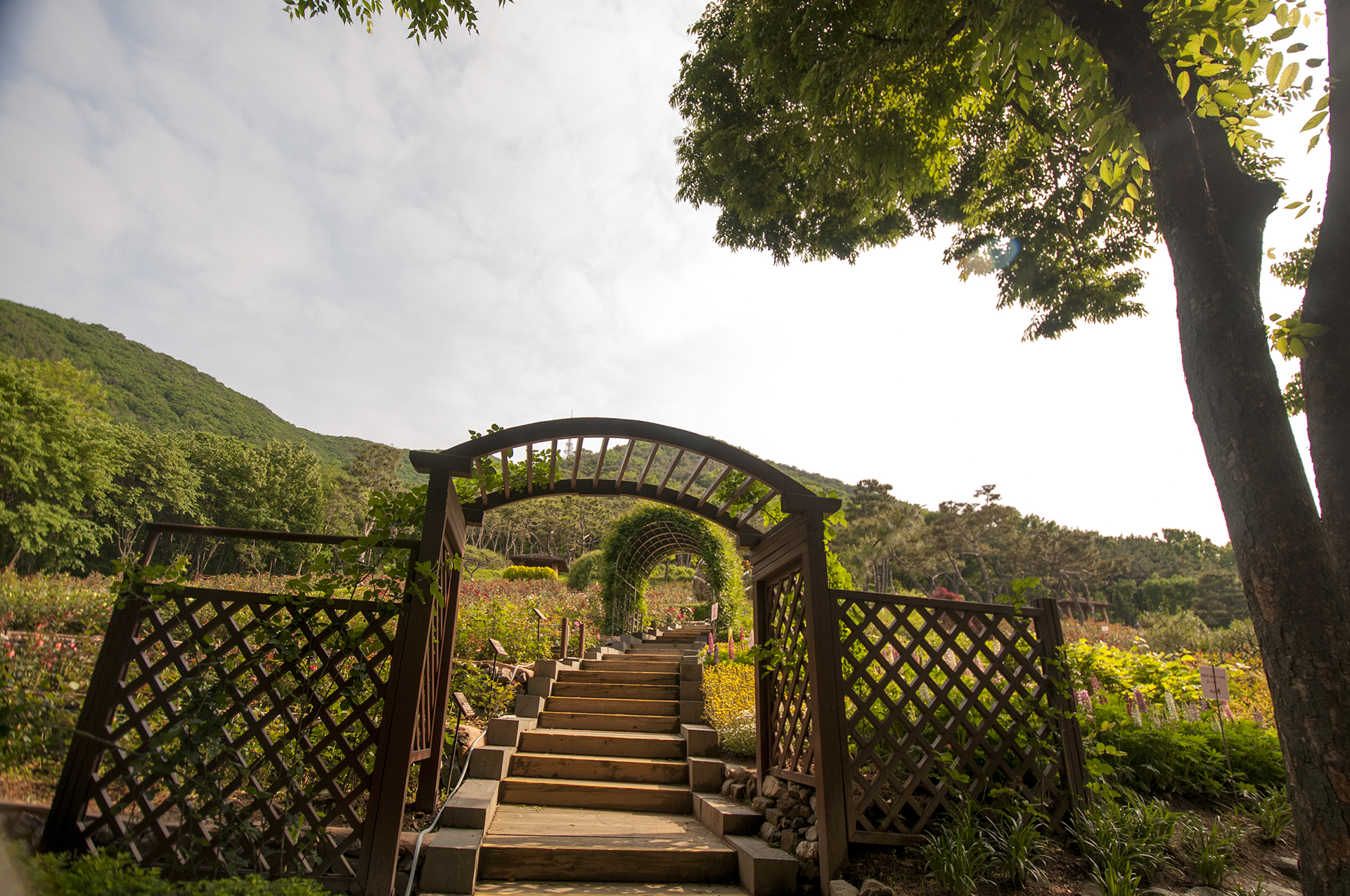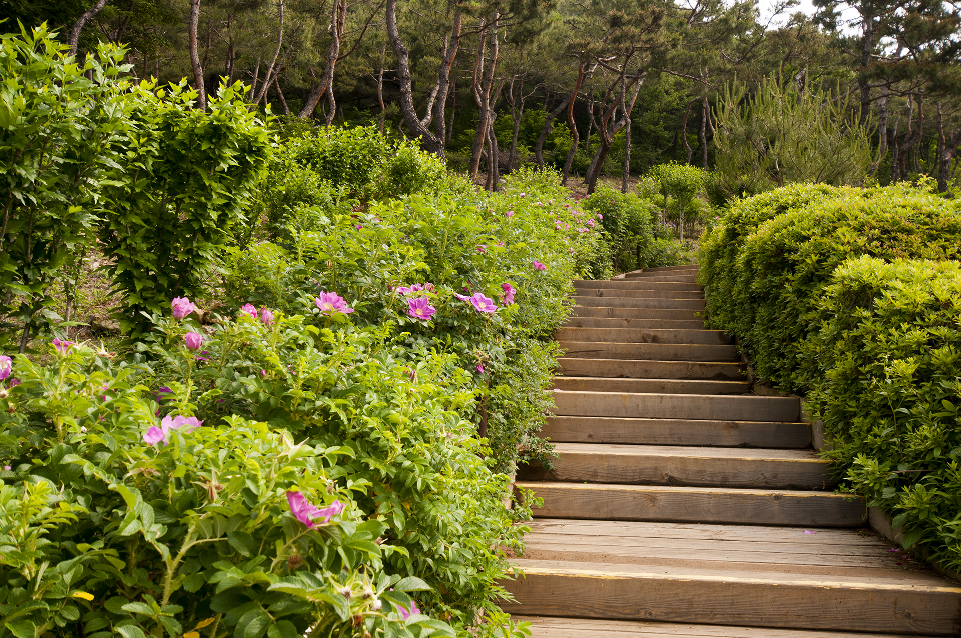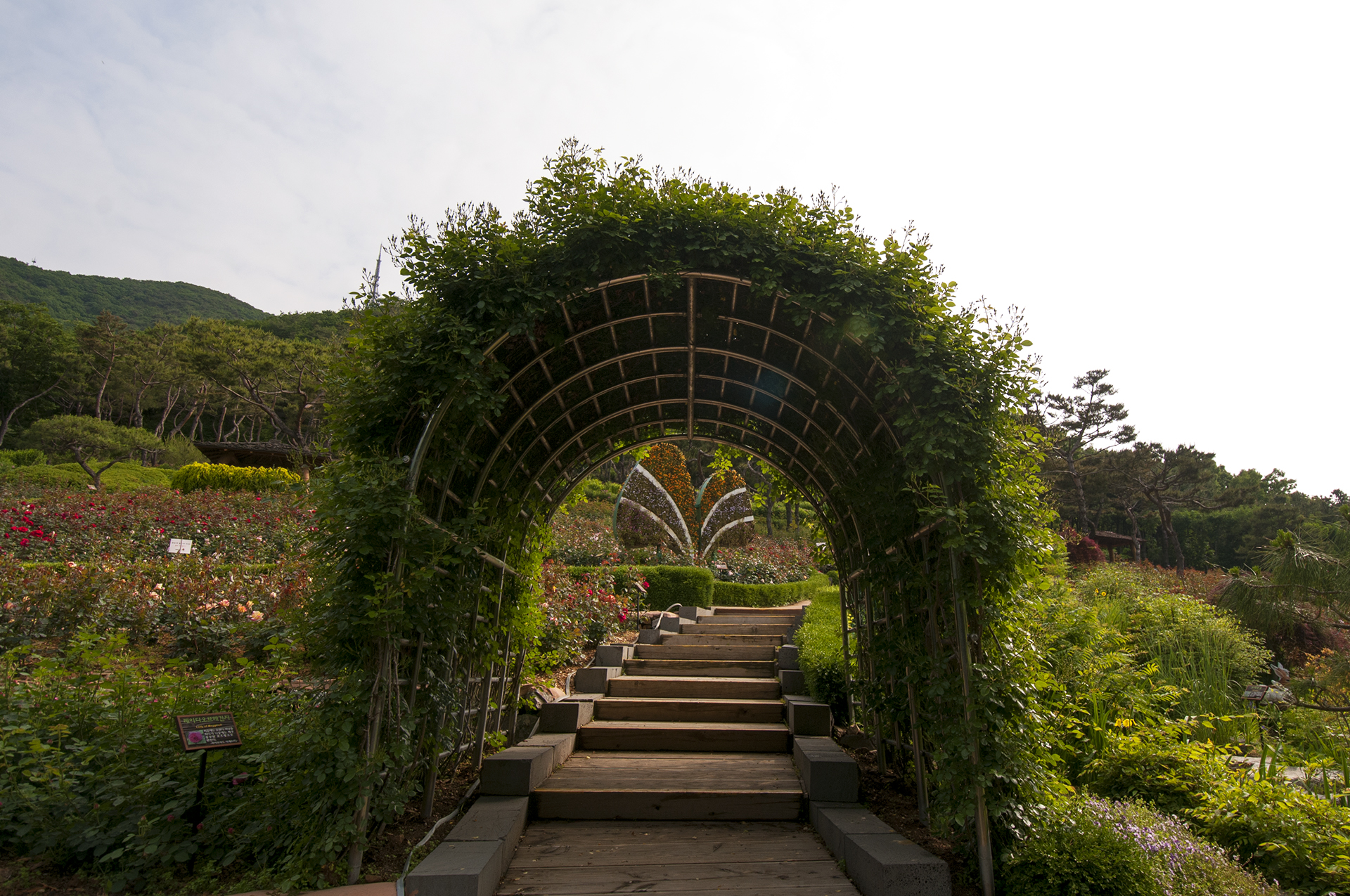 장미원은 계양산 자락에 위치해 있어 계단으로 올라가면서 양쪽 옆으로 층층이 식재되어 있다.