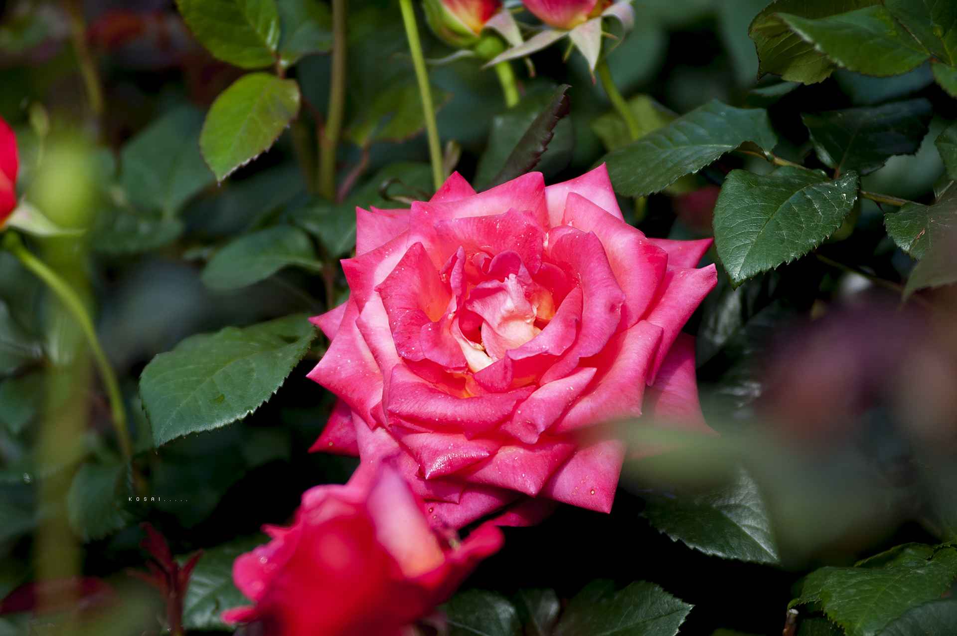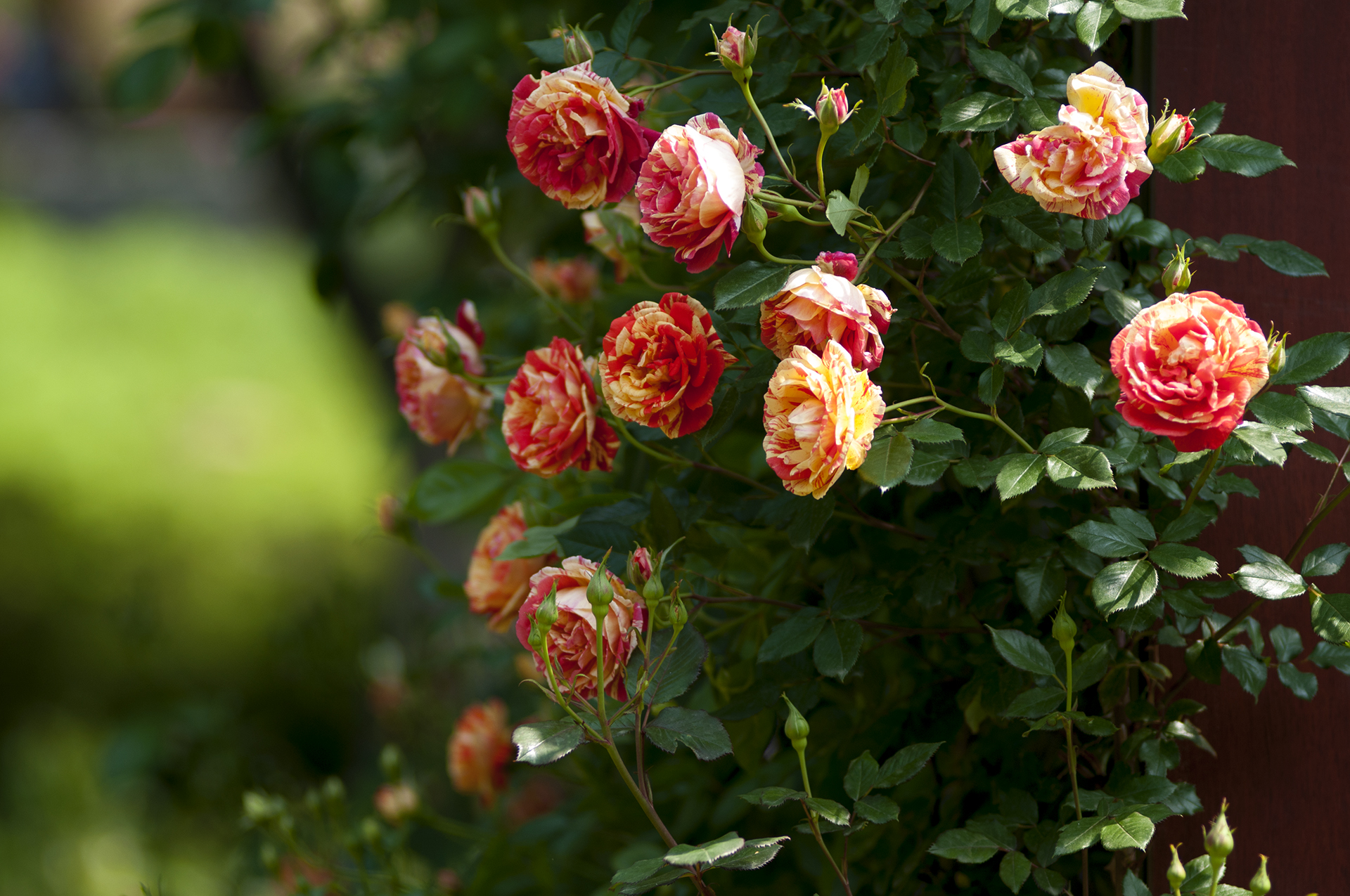 황적색의 변색종으로 색상이 매우 화려한 장미다.