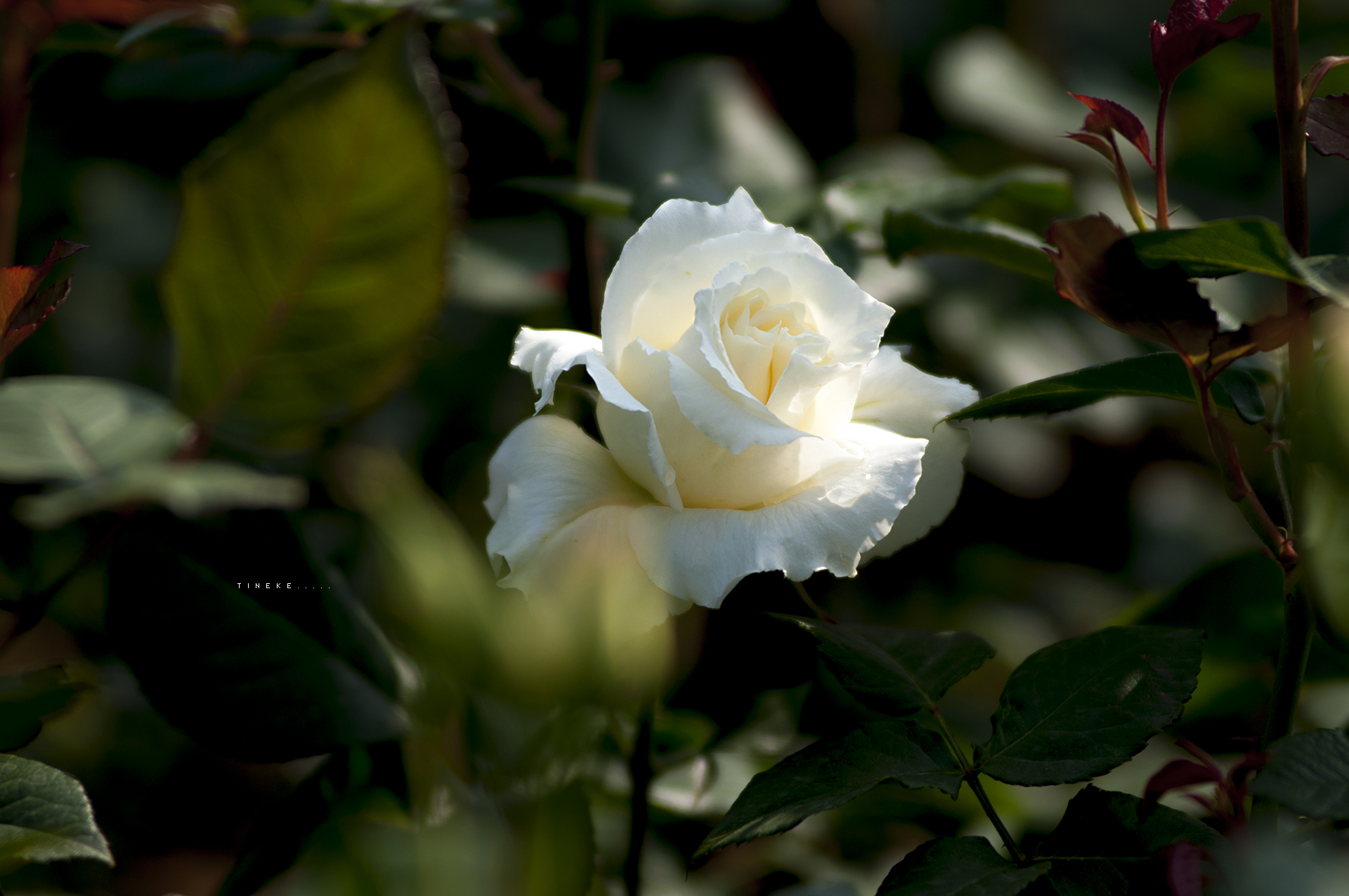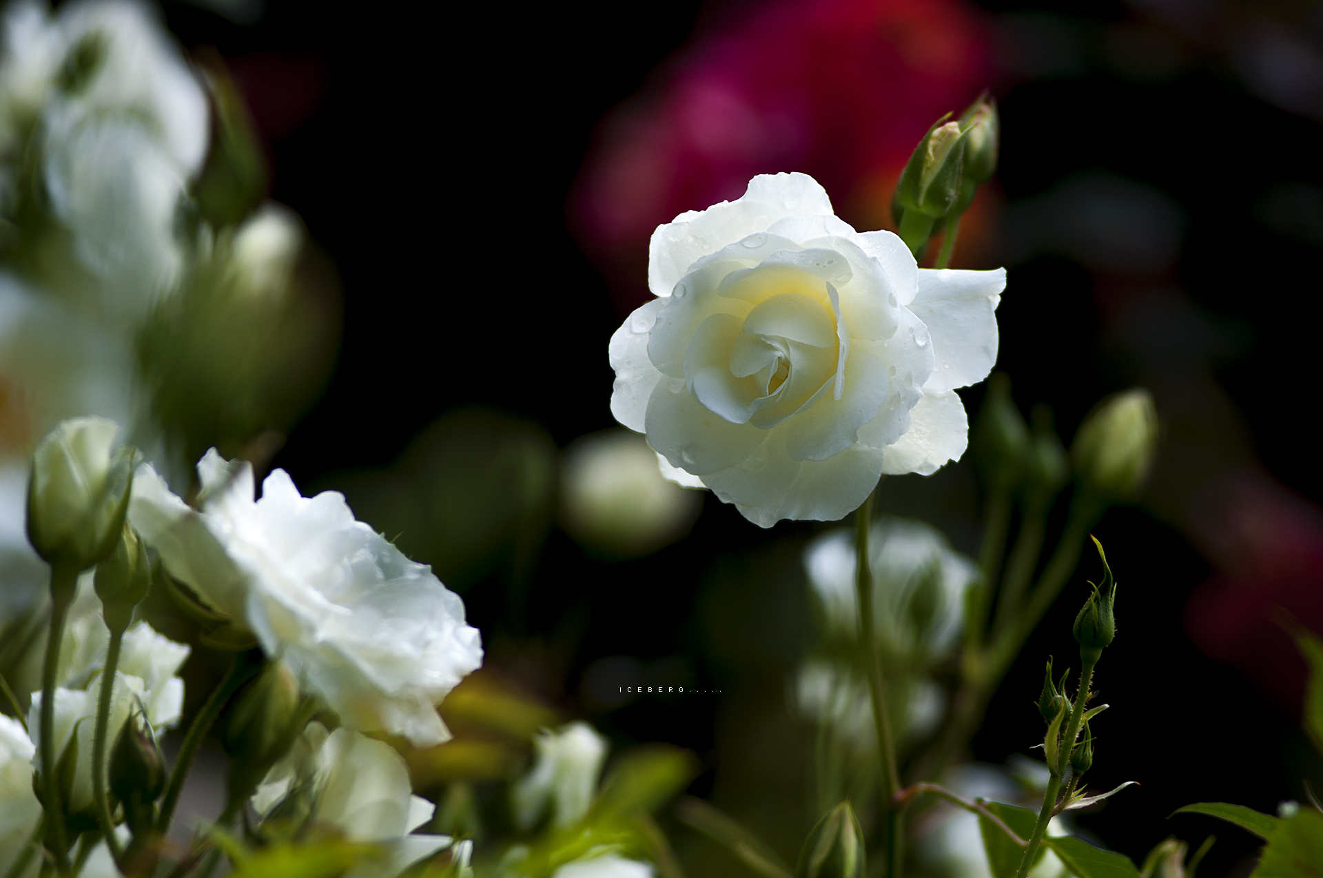 순백색의 하얀 장미로 꽃이 큰 편이다.