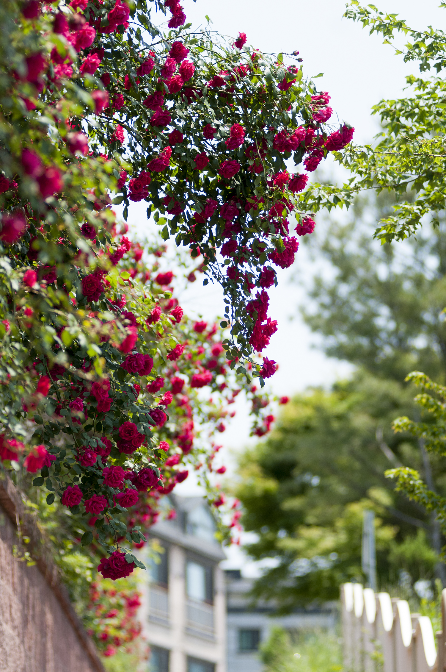 집으로 돌아가는 길, 담장에 피어난 넝쿨장미를 담아본다.