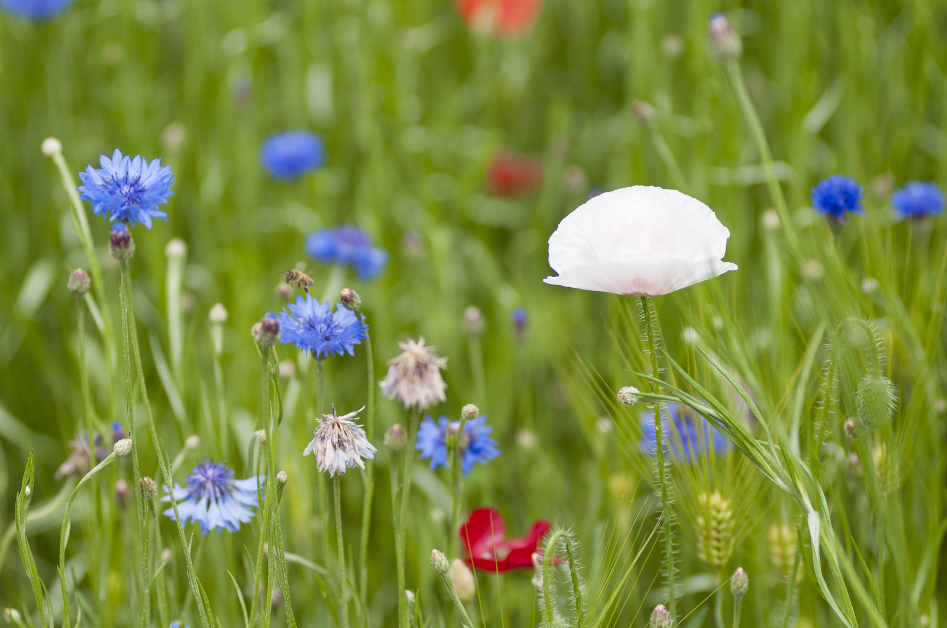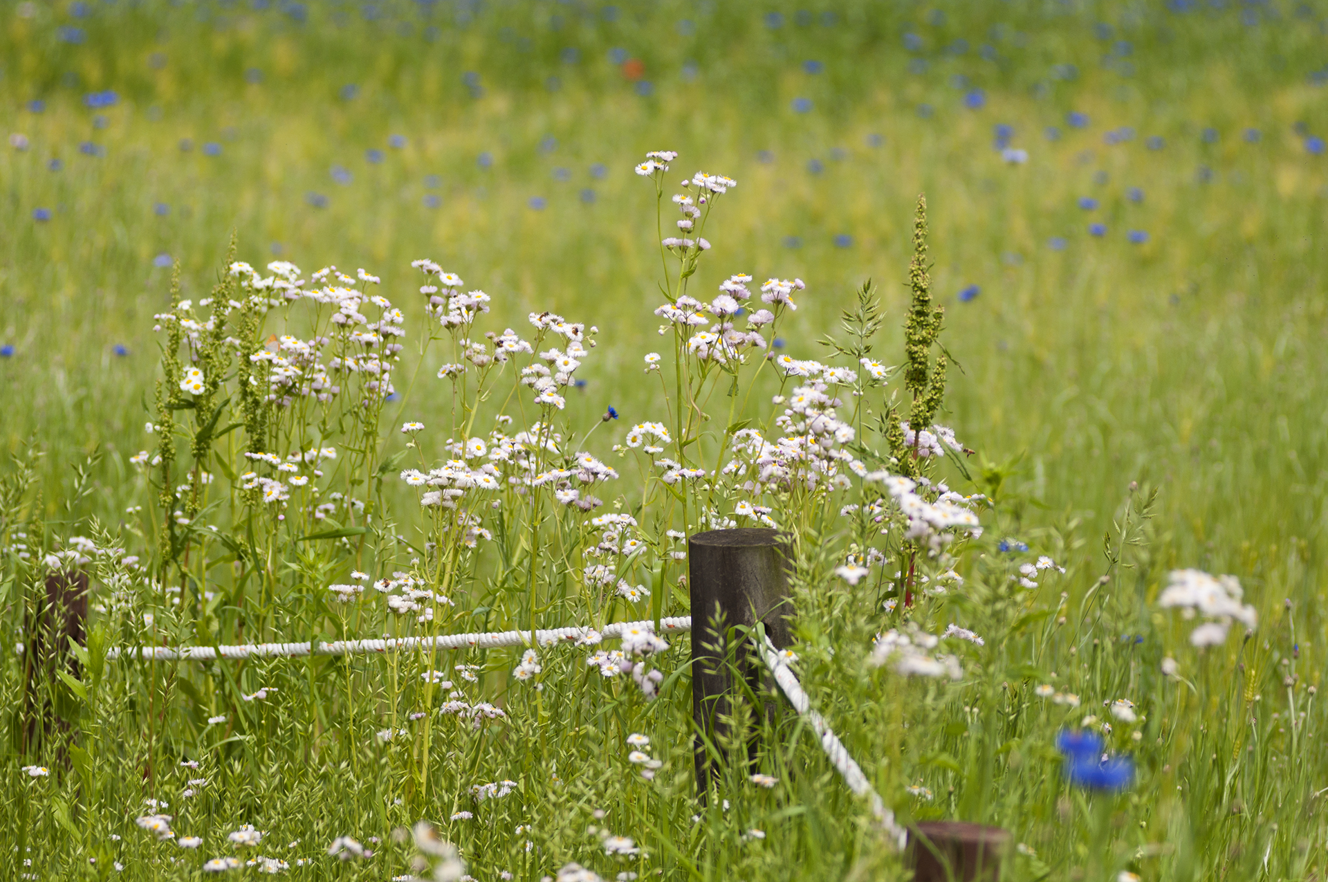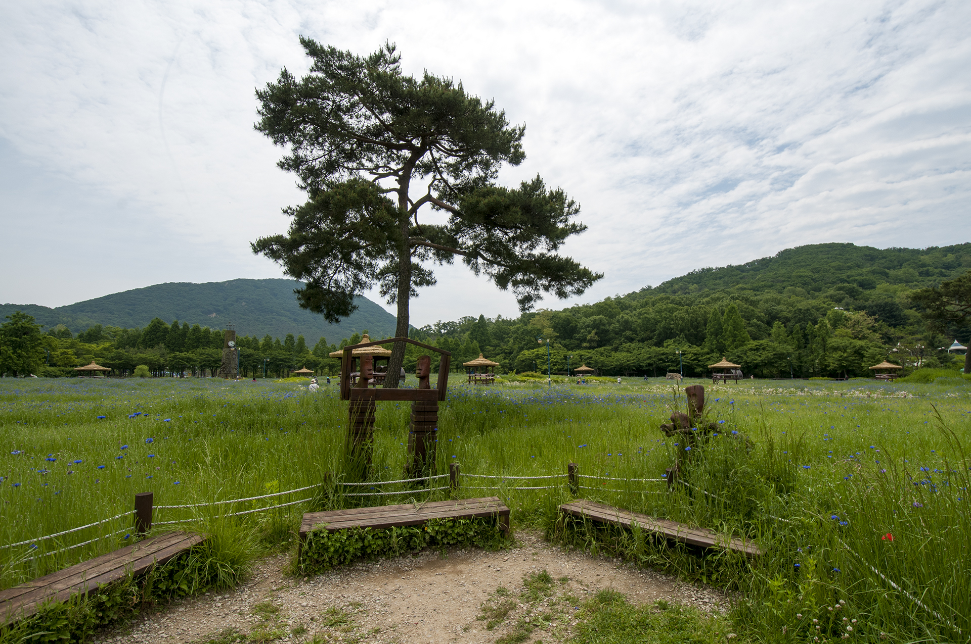 넓은 대지에 수레국화와 청보리, 꽃양귀비, 개망초 등이 정원 이름처럼 어우러져 있어 사진찍기에 좋은 곳이다.