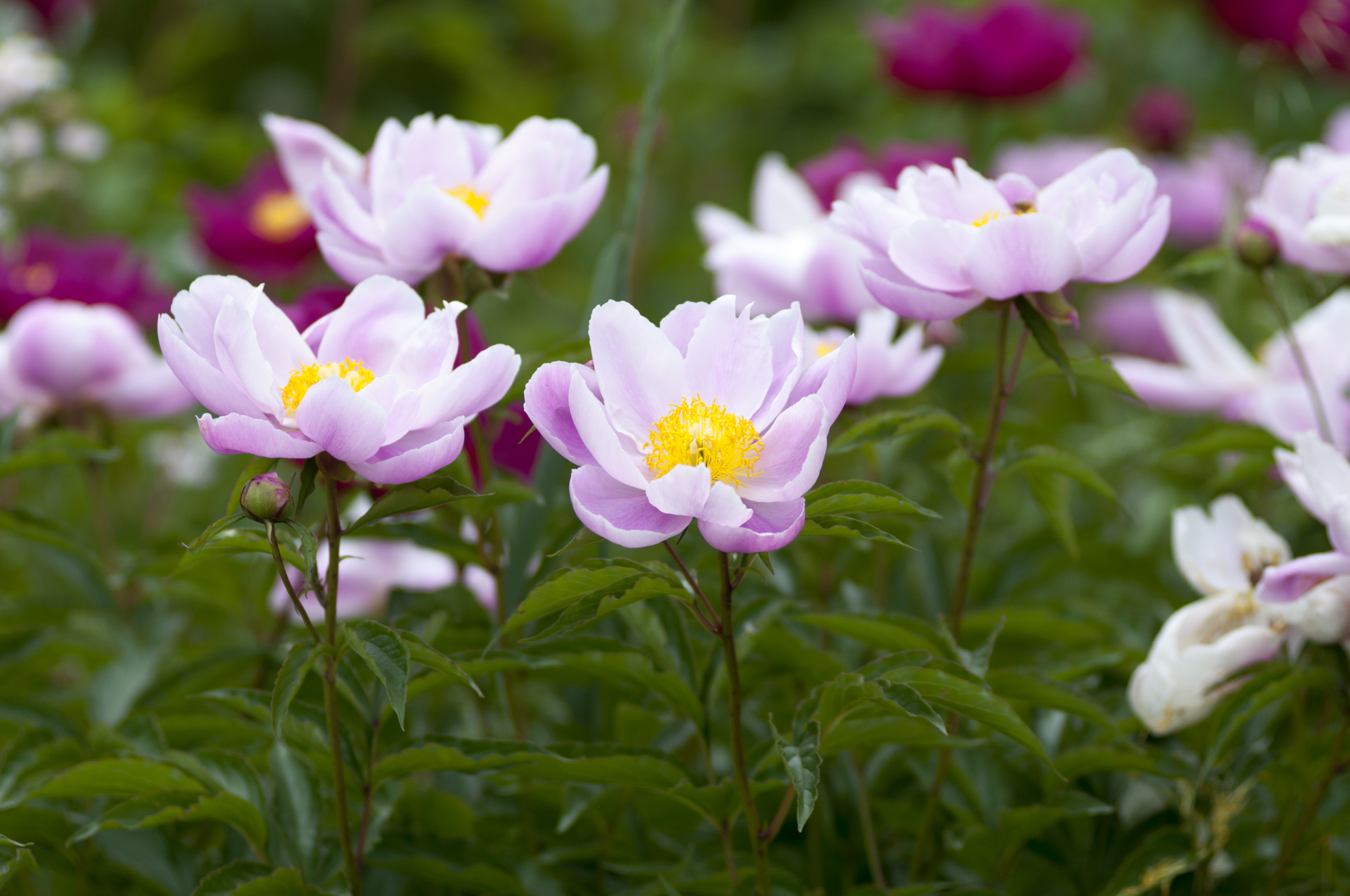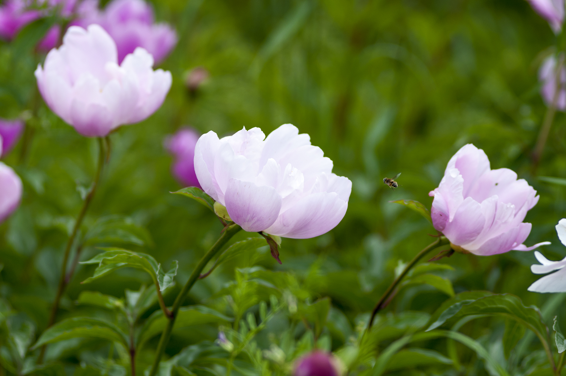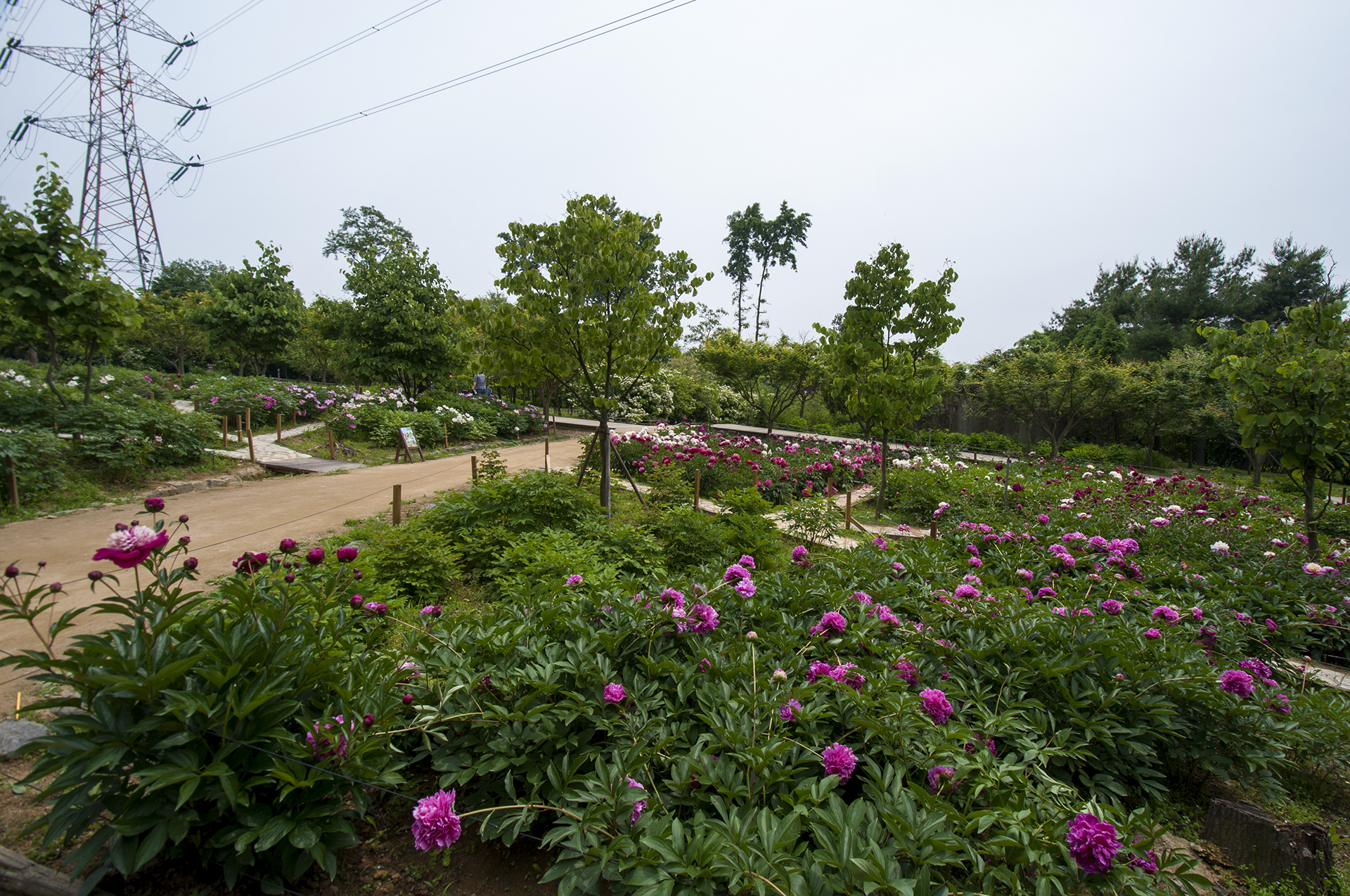 수레국화 저 너머에는 작약이 식재되어 있다.