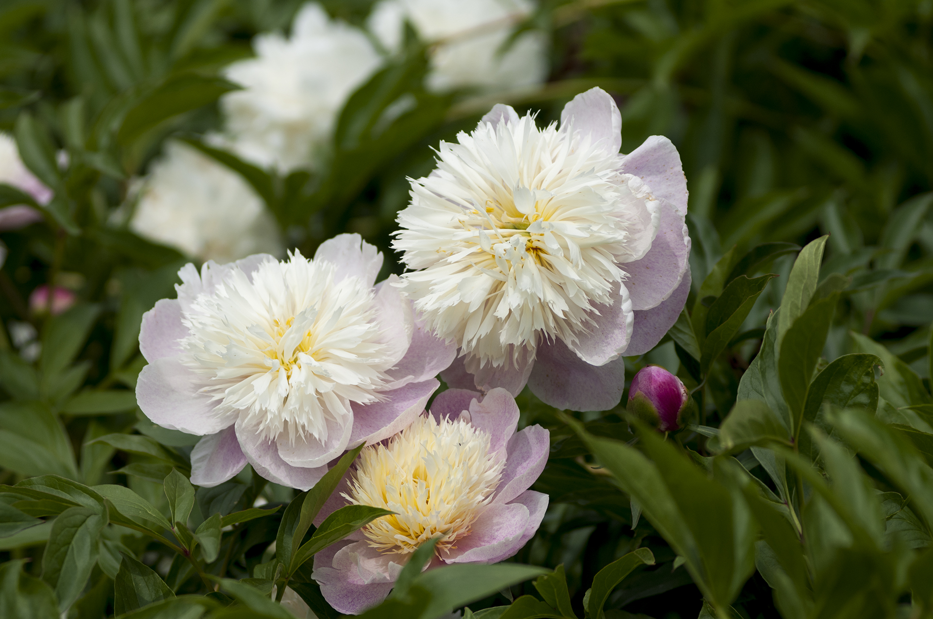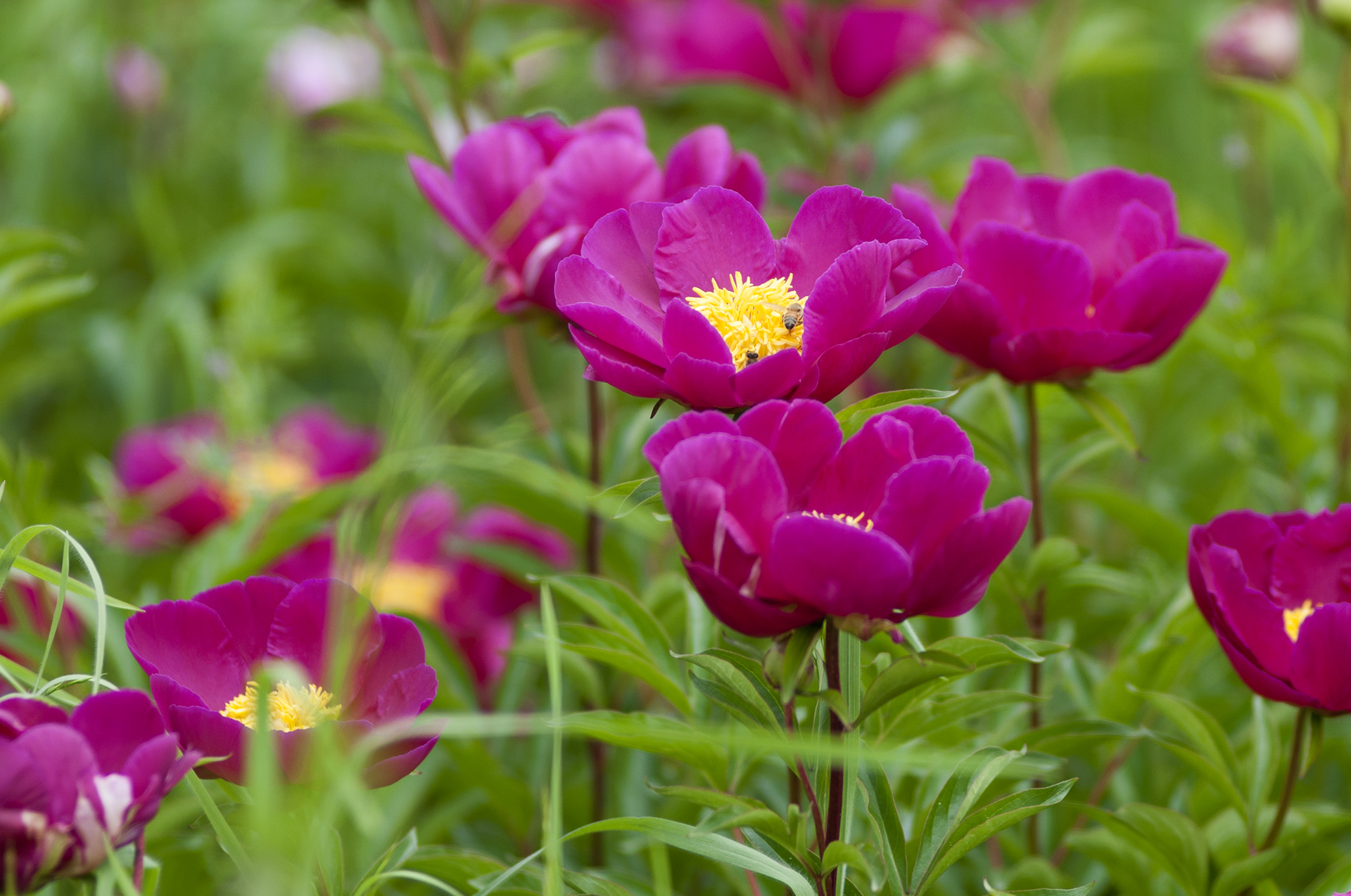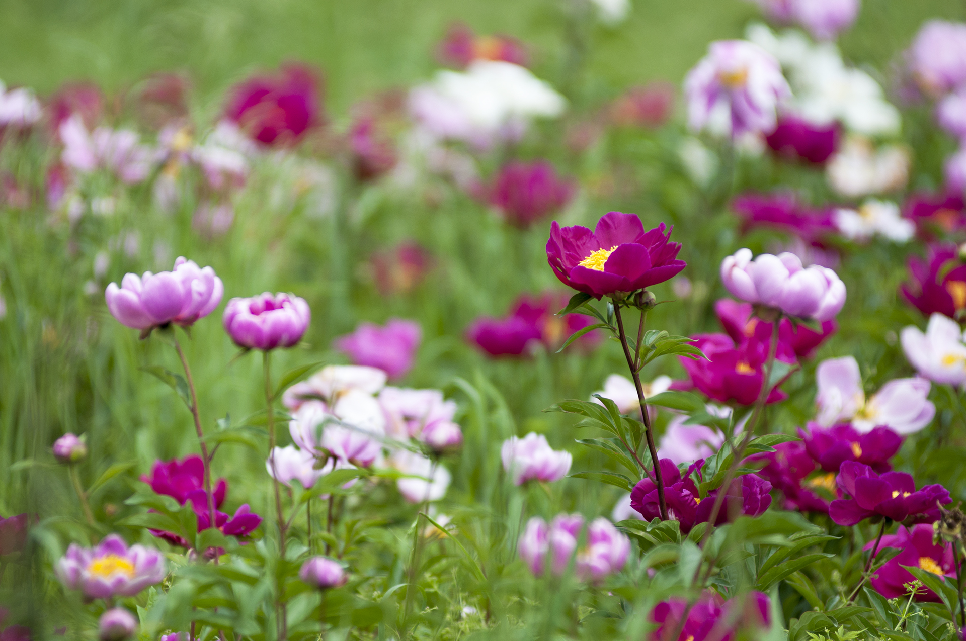 수레국화 저 너머에는 작약이 식재되어 있다.