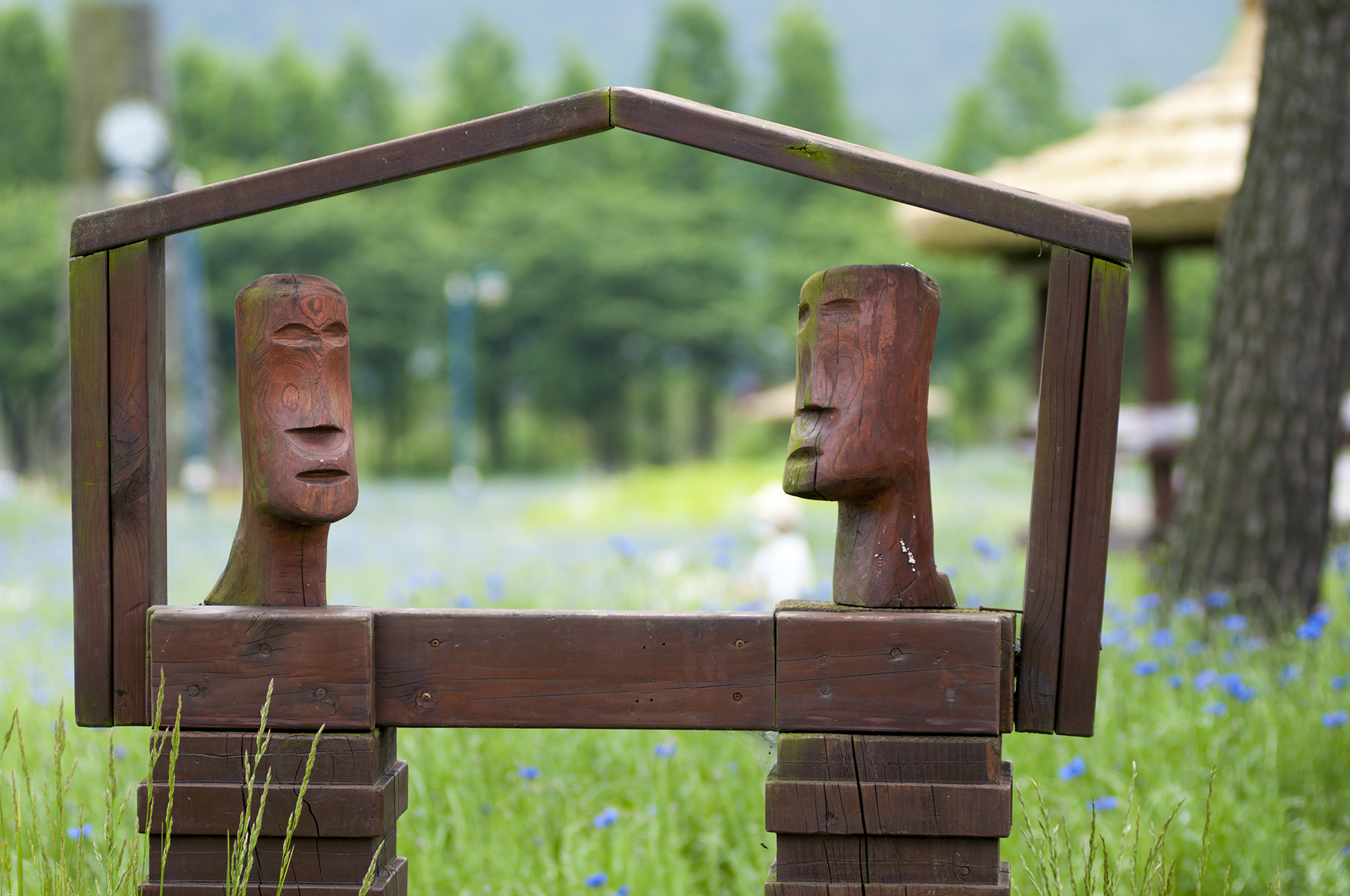 두눈 치켜뜨고 수호신처럼 커다란 장승이 꽃밭 한가운데에 서있다.