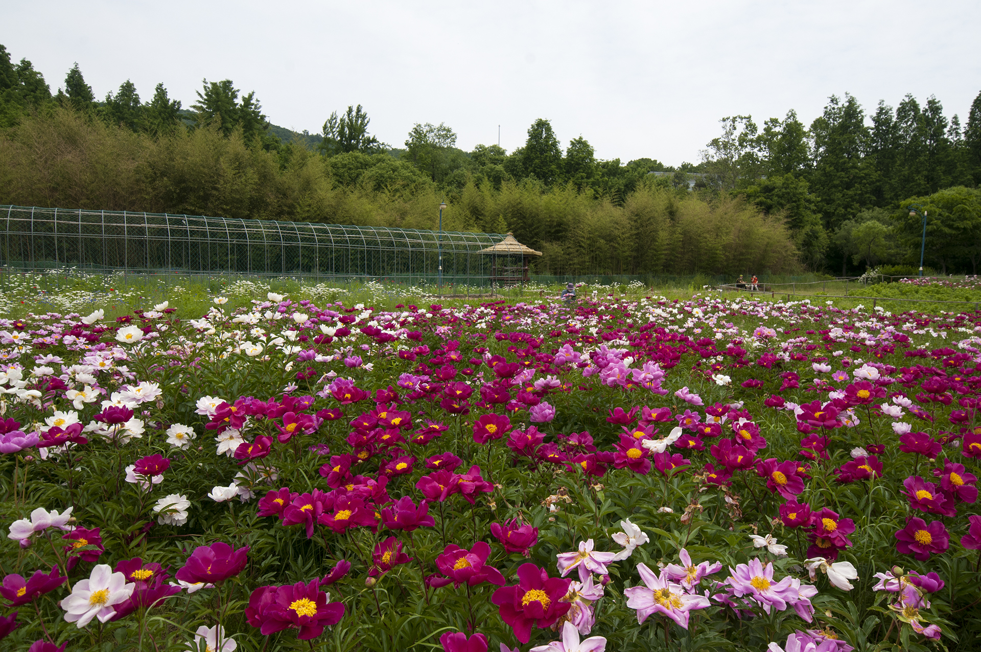 벚꽃이 아름다웠던 향기정원에 지금은 작약과 노랑꽃창포 등 야생화들이 만발해 있다.
