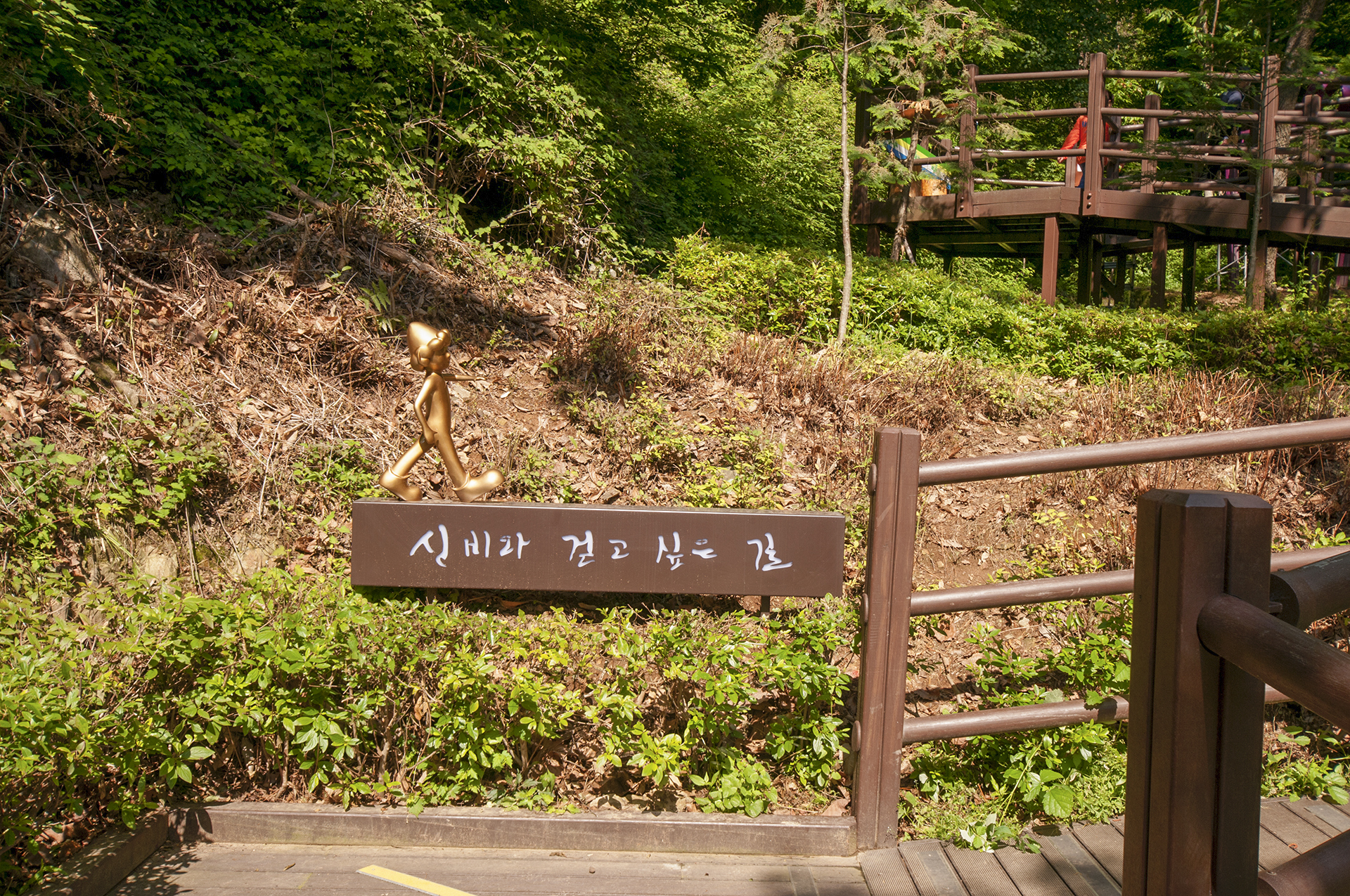 철문을 통과하면 다시 보이는 둘레길 마스코트와 리본, 그리고 사람^^