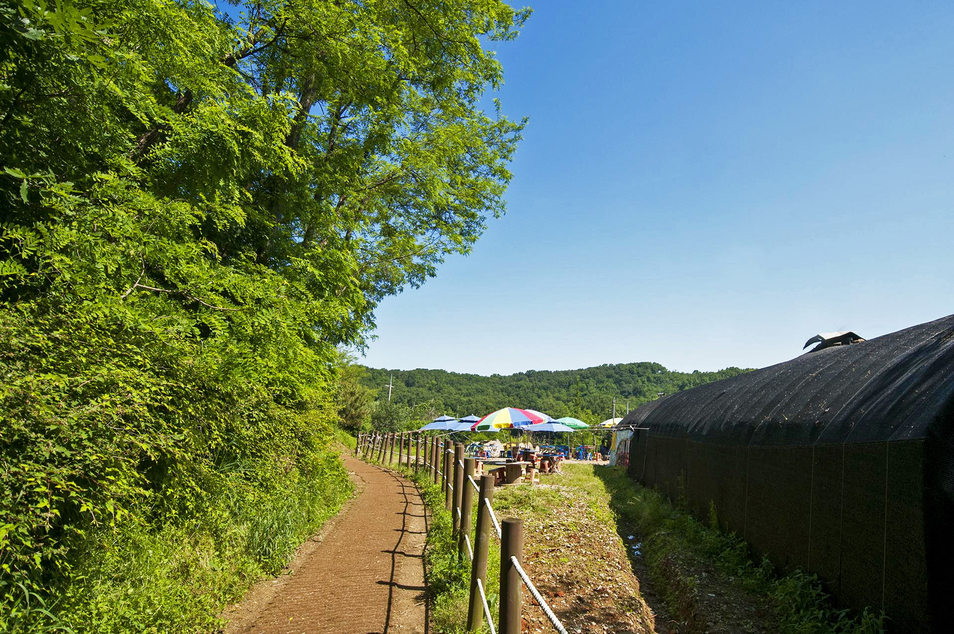 알록달록 파라솔이 세워진 식당을 하나 더 지나고