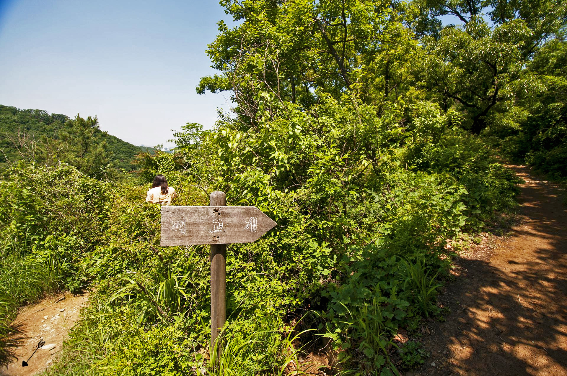 속는셈 치고 산 윗쪽으로 잠깐 올라오니 다시 오른쪽을 가리키는 마스코트