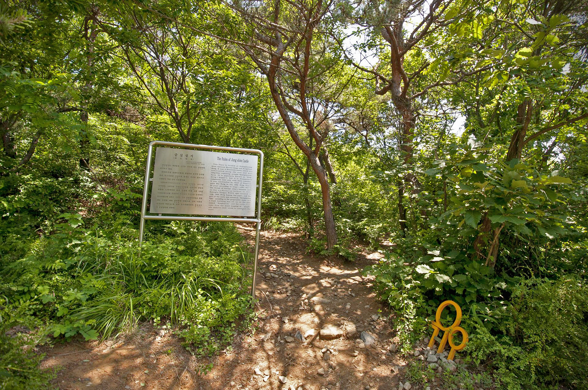 화단에 둘레길 표식이 가야할 방향을 가리킨다.
