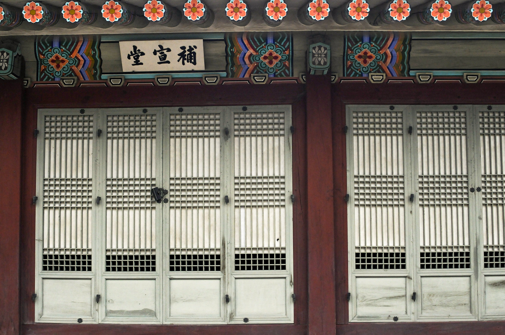 건순문과 연휘문을 연결하는 'ㄱ'자 담장의 안쪽 벽면에 있는 꽃문양이다.