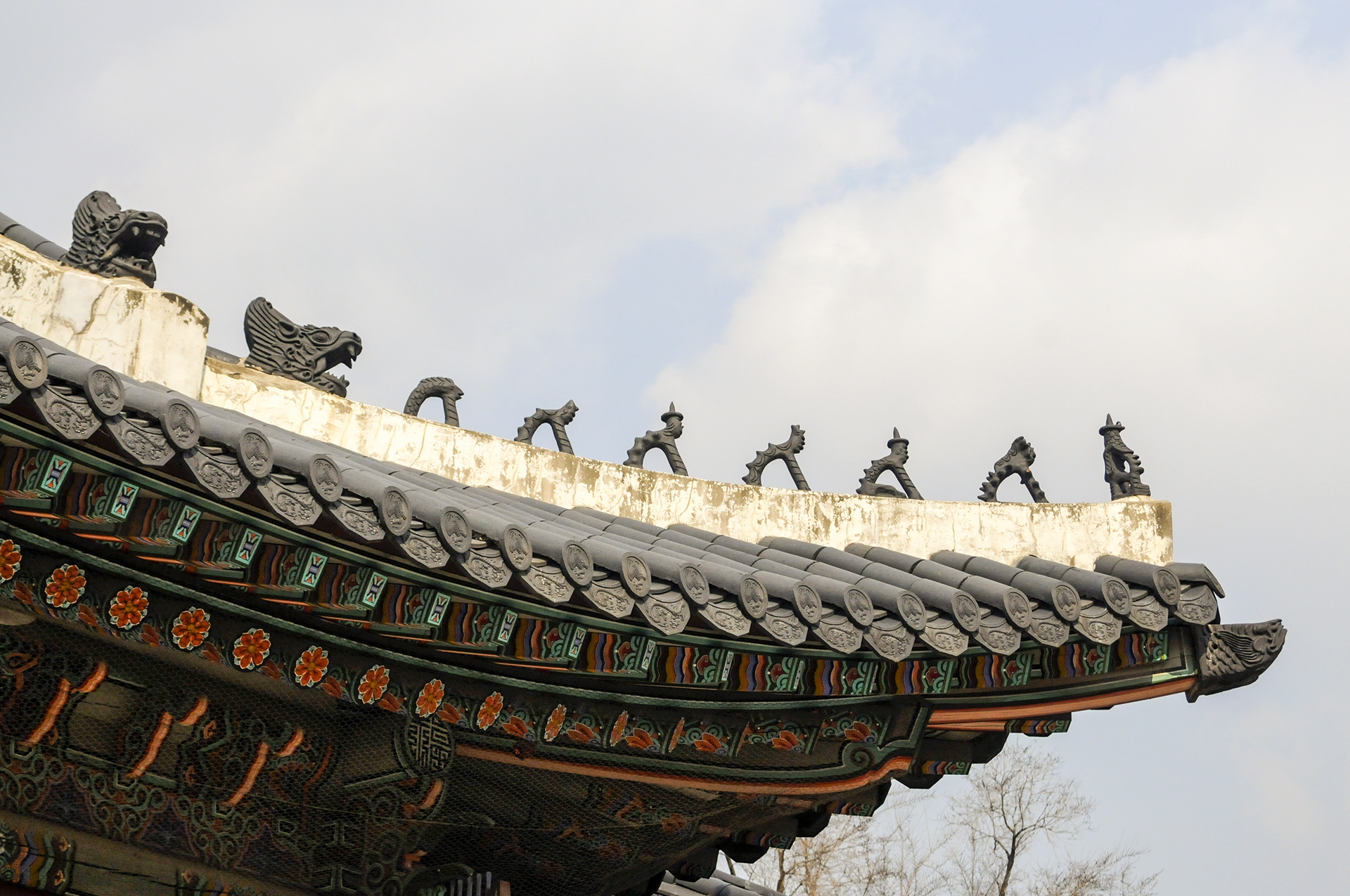 강녕전과 마찬가지로 용두 앞으로 7개의 잡상을 세웠다.