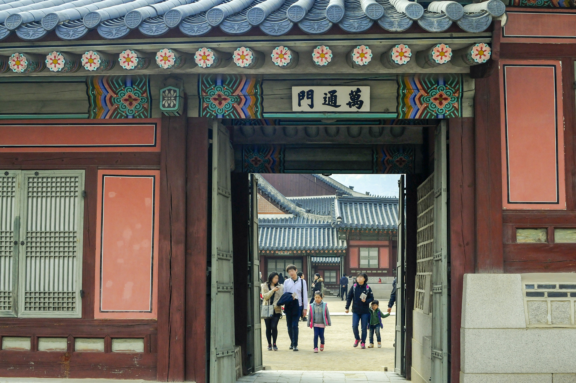 교태전 동쪽 행각에 있는 문으로 만물이 형통하여 태평함을 의미한다. 만통문 우측에 체인당이 있다.