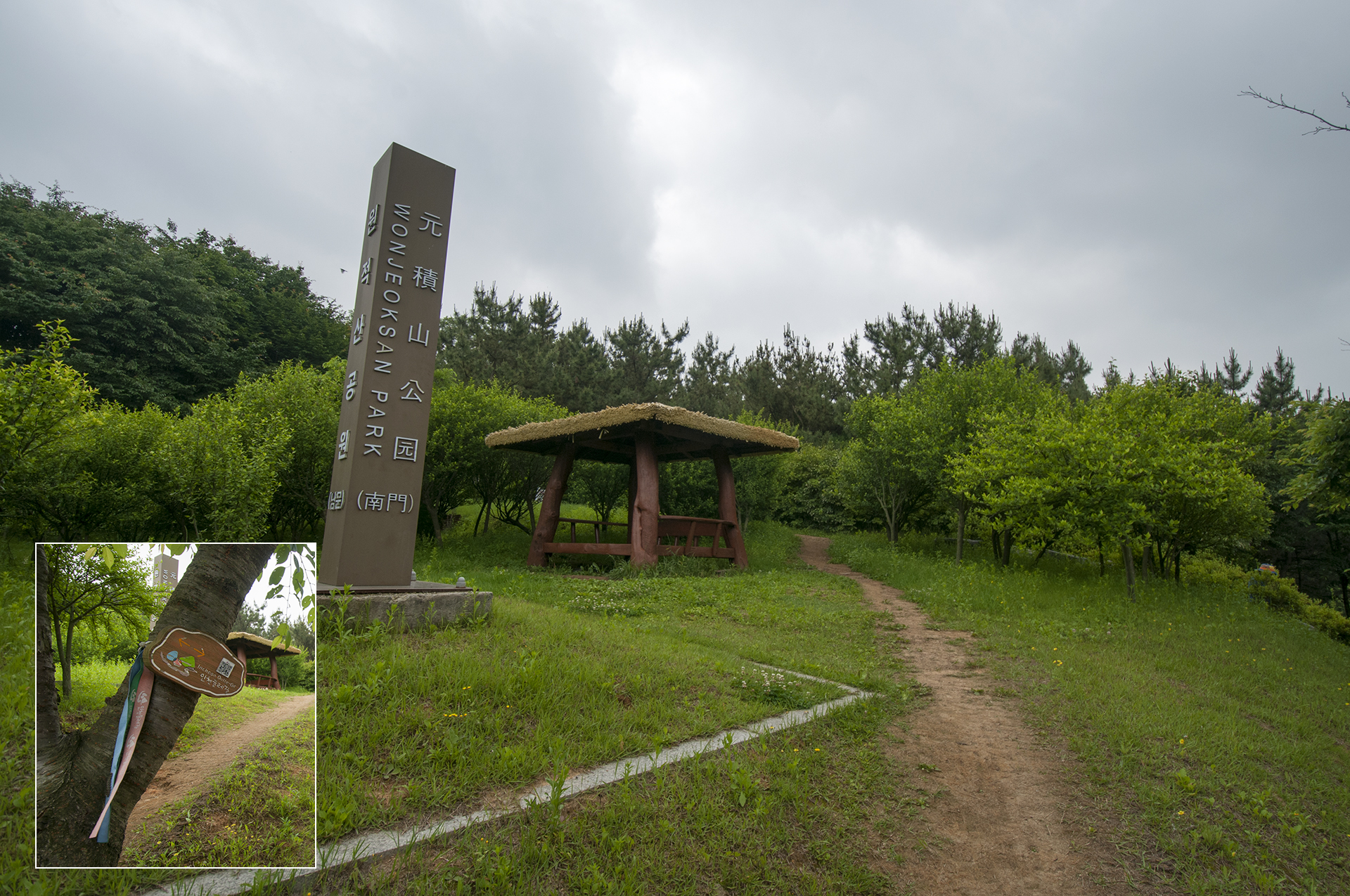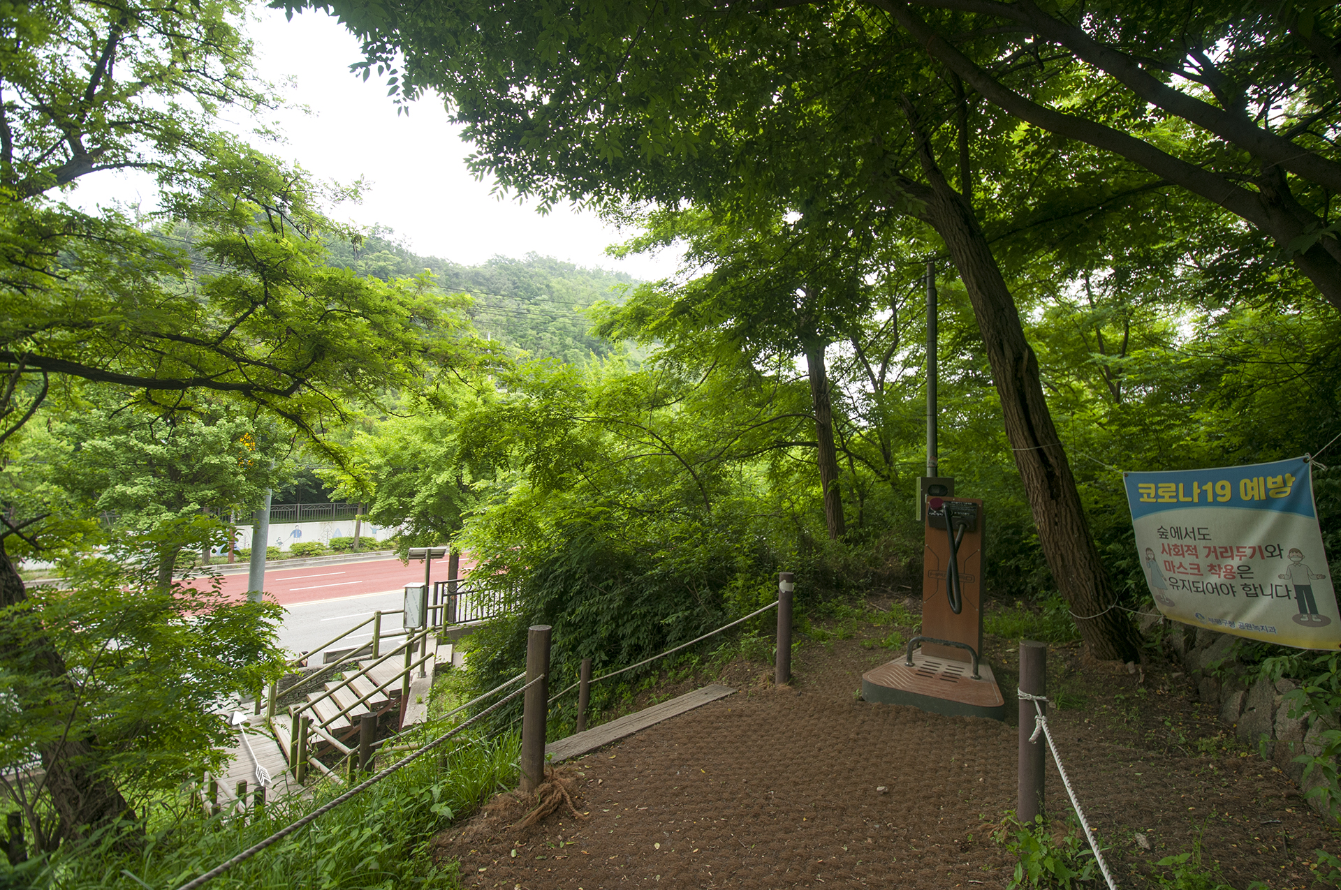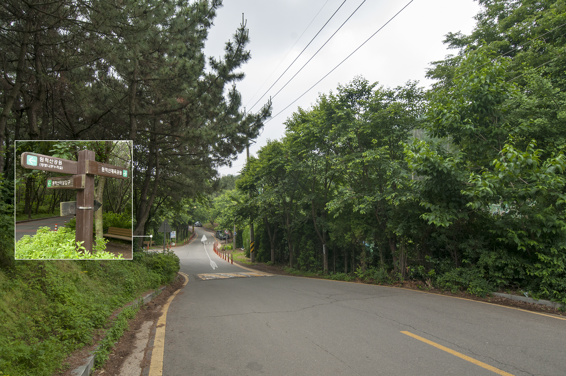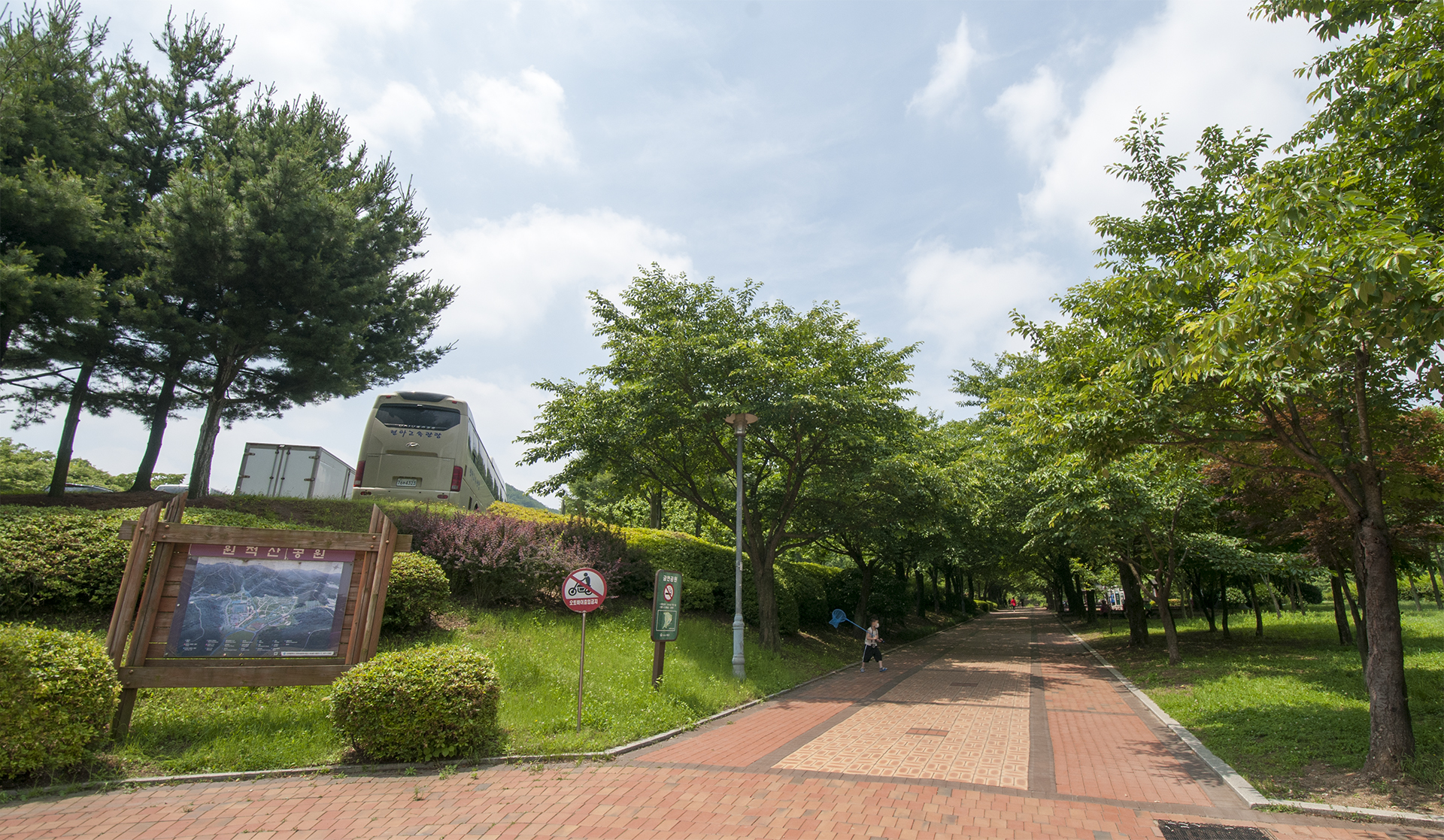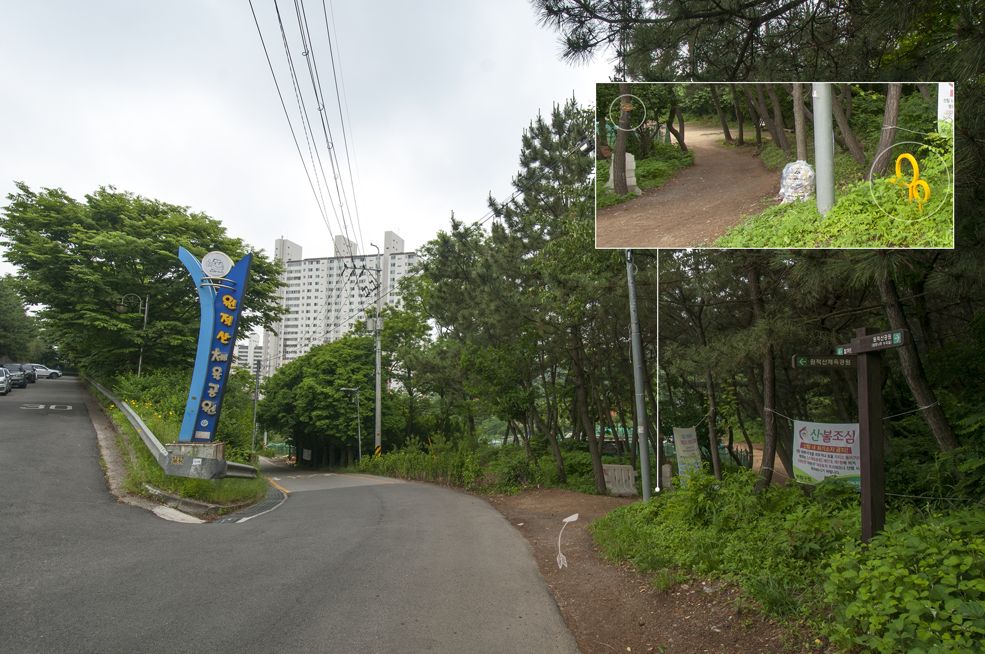 원적산공원 정문을 지나