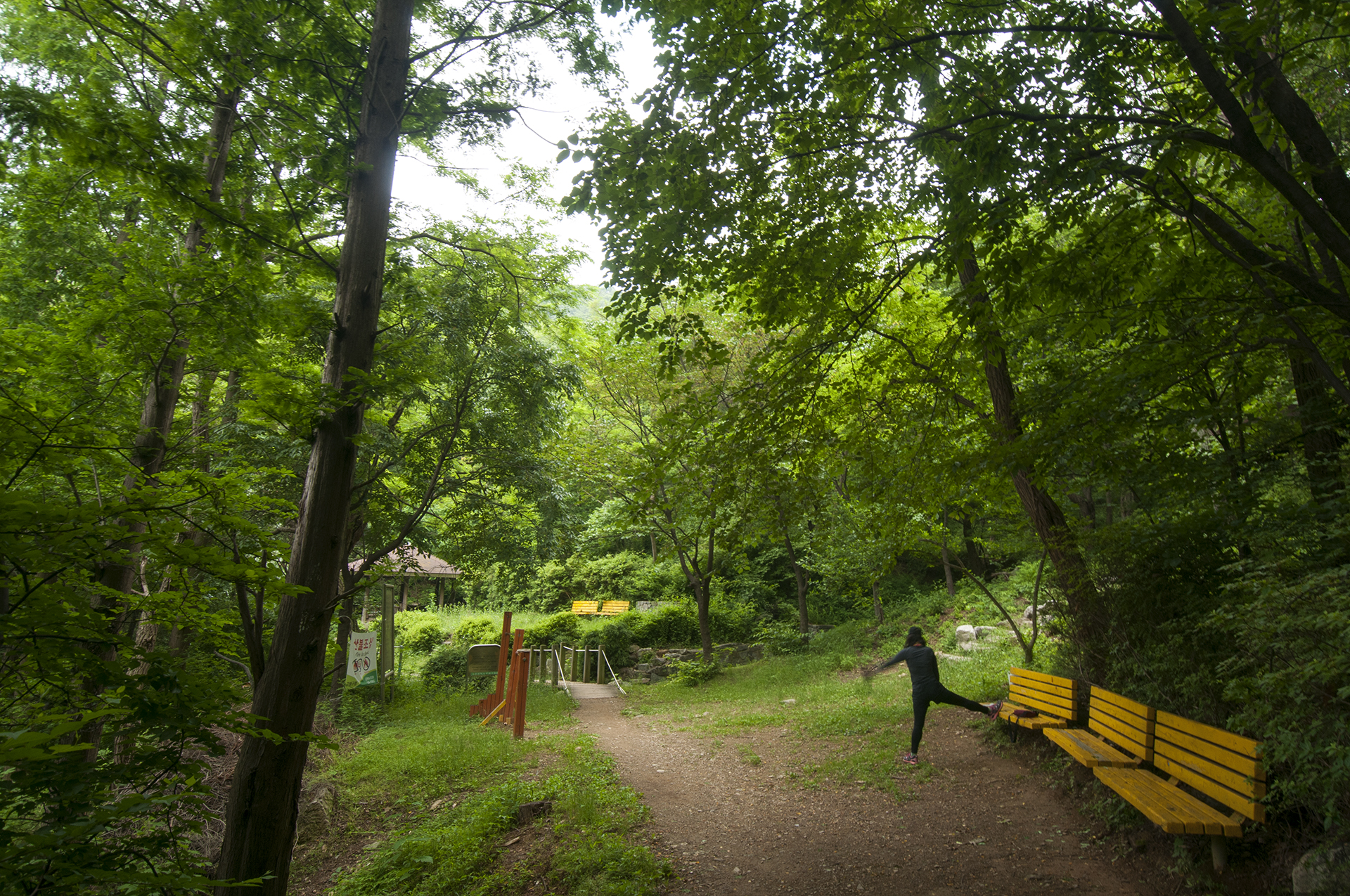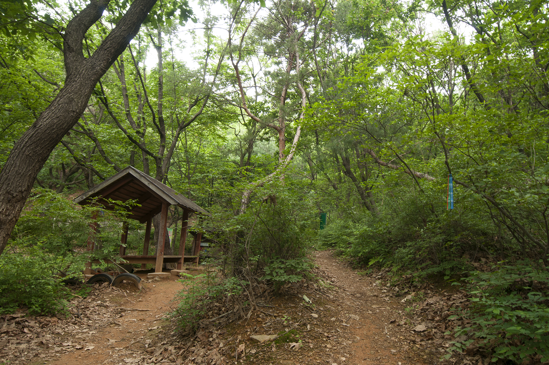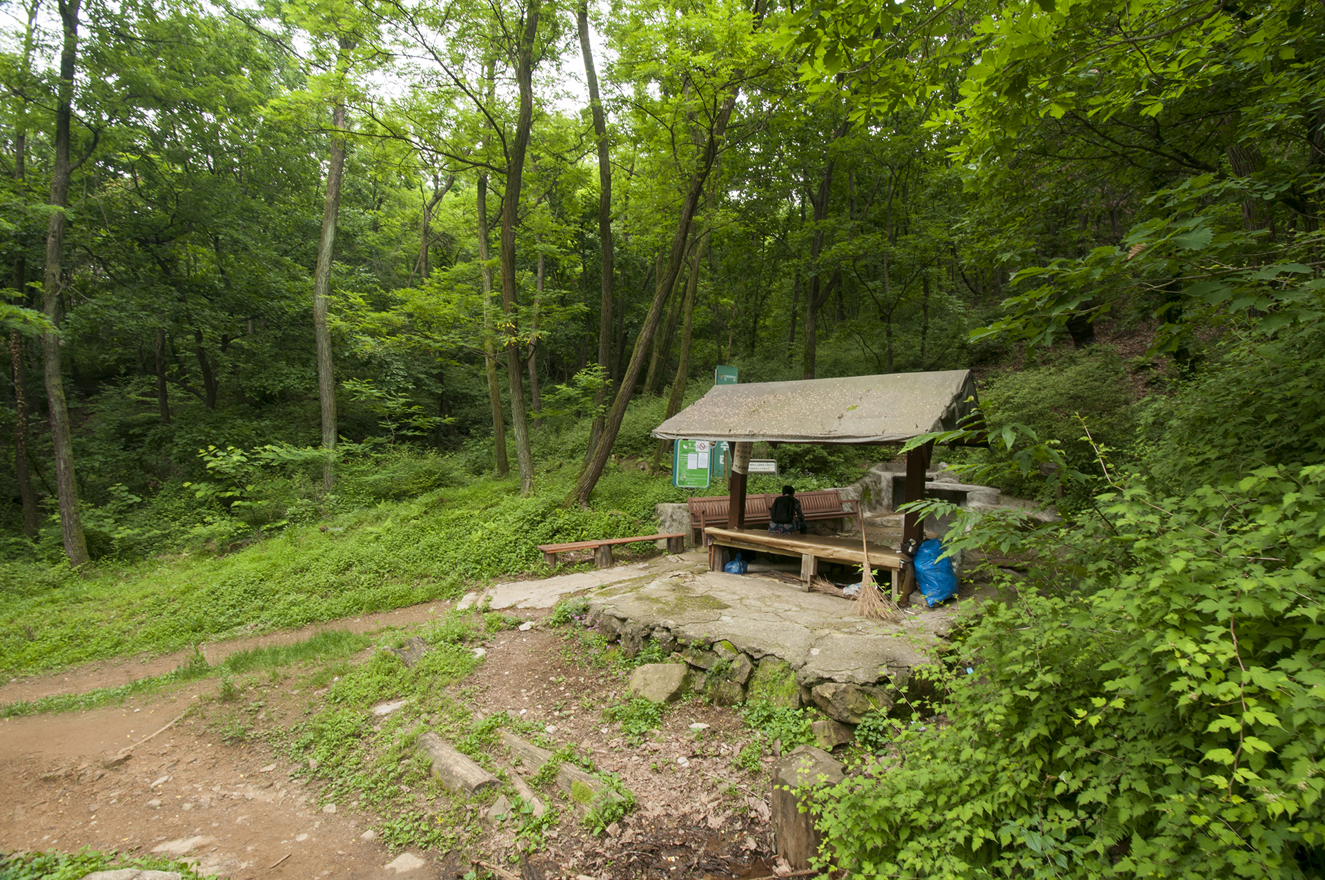 잠시후 넓은 쉼터에 도착하자 숲속에 울려 퍼지는 싸이렌 소리.