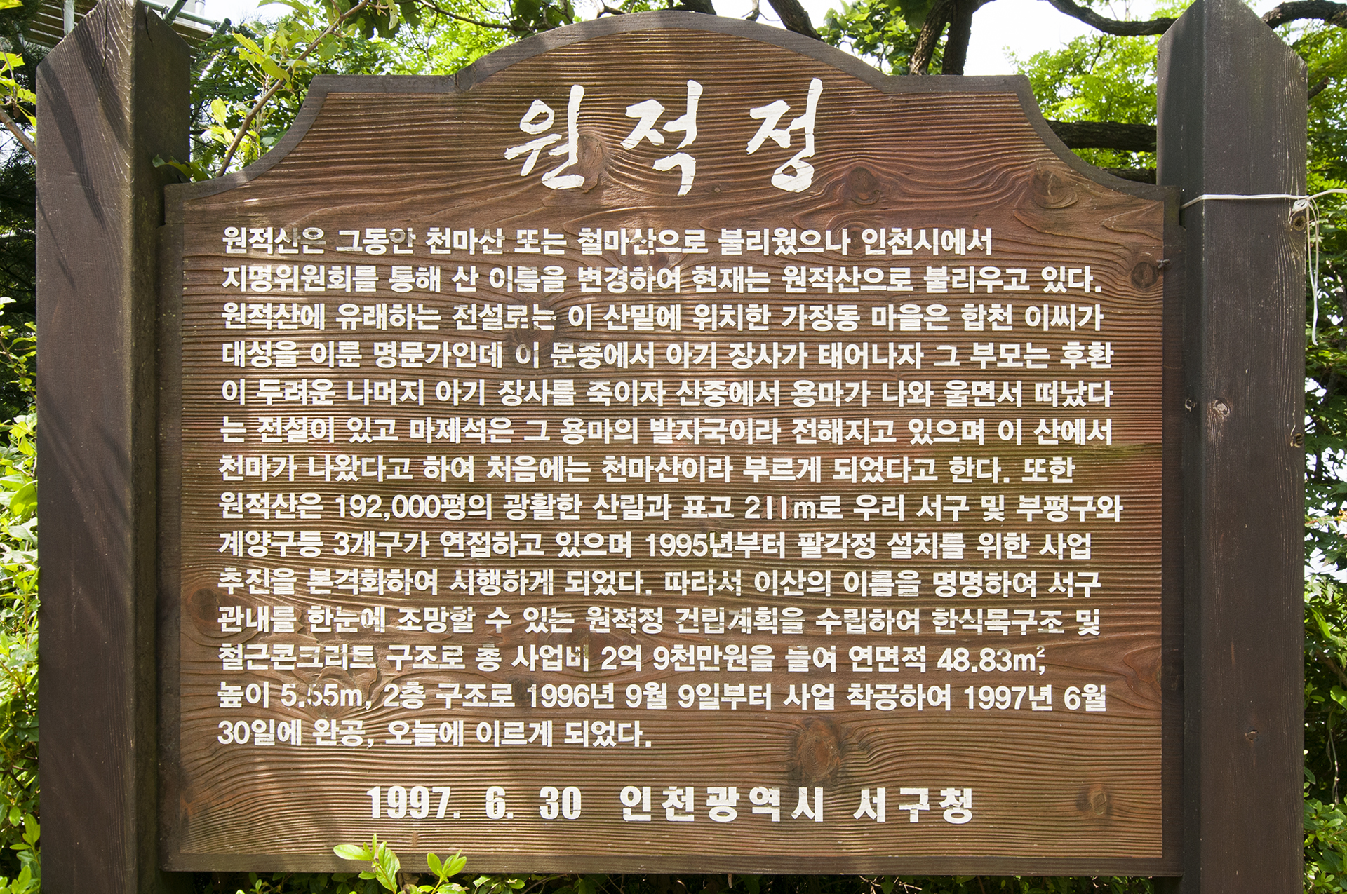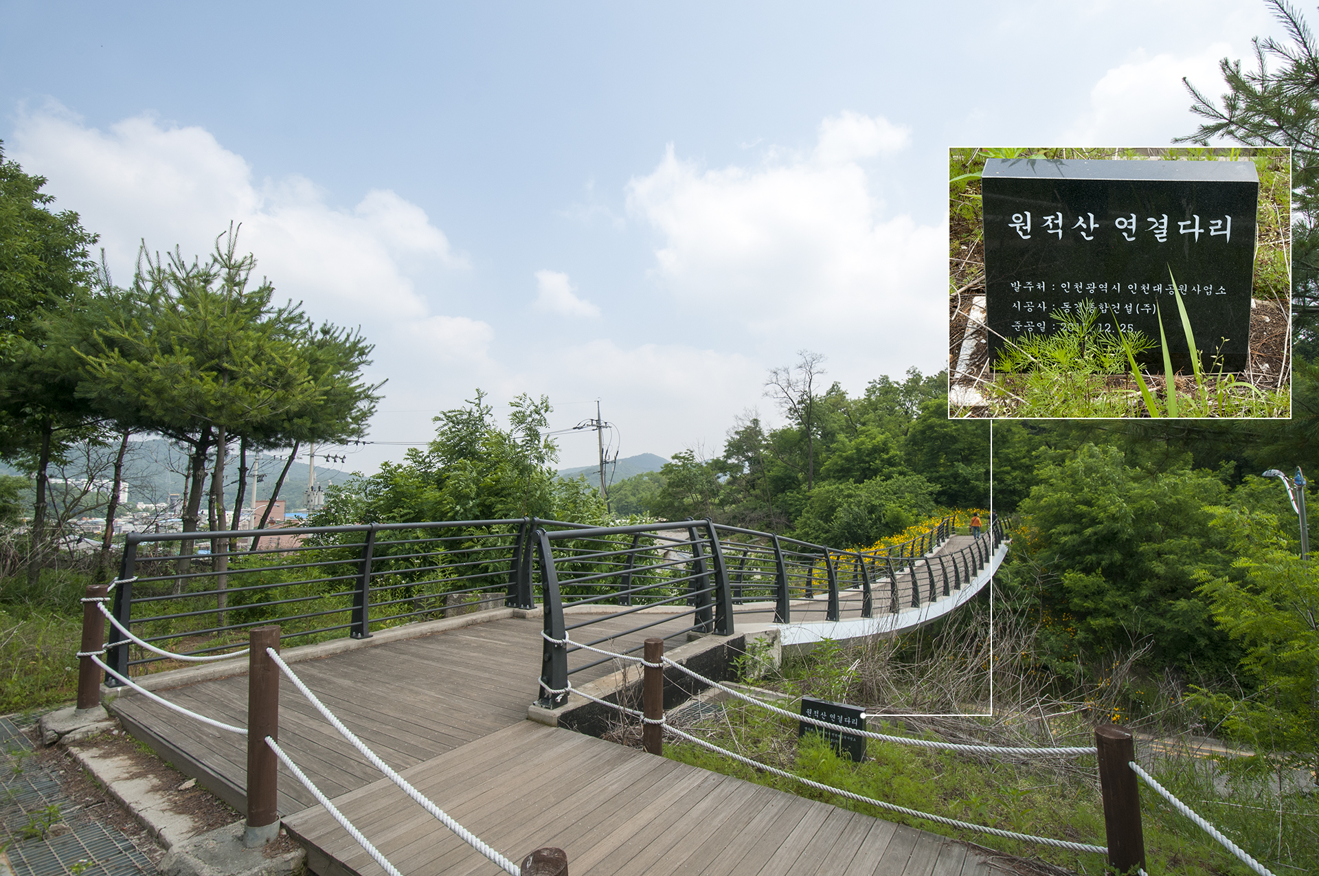 준공 비석에는 원적산 연결다리로 되어 있다.