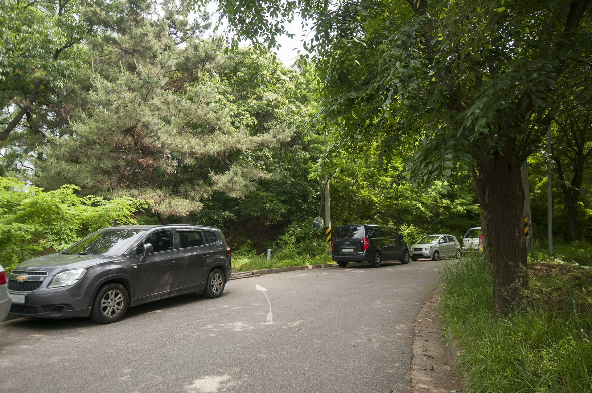 여기서 부터 100m정도 주차장 길을 따라 걸어가게 된다.