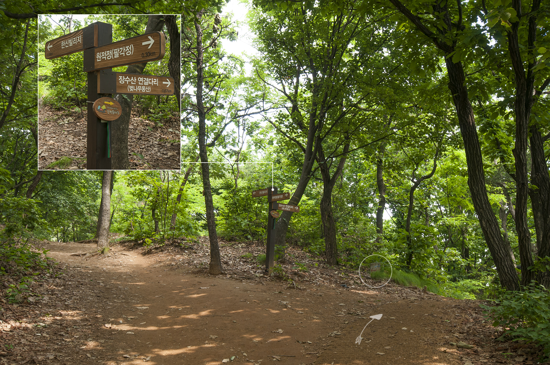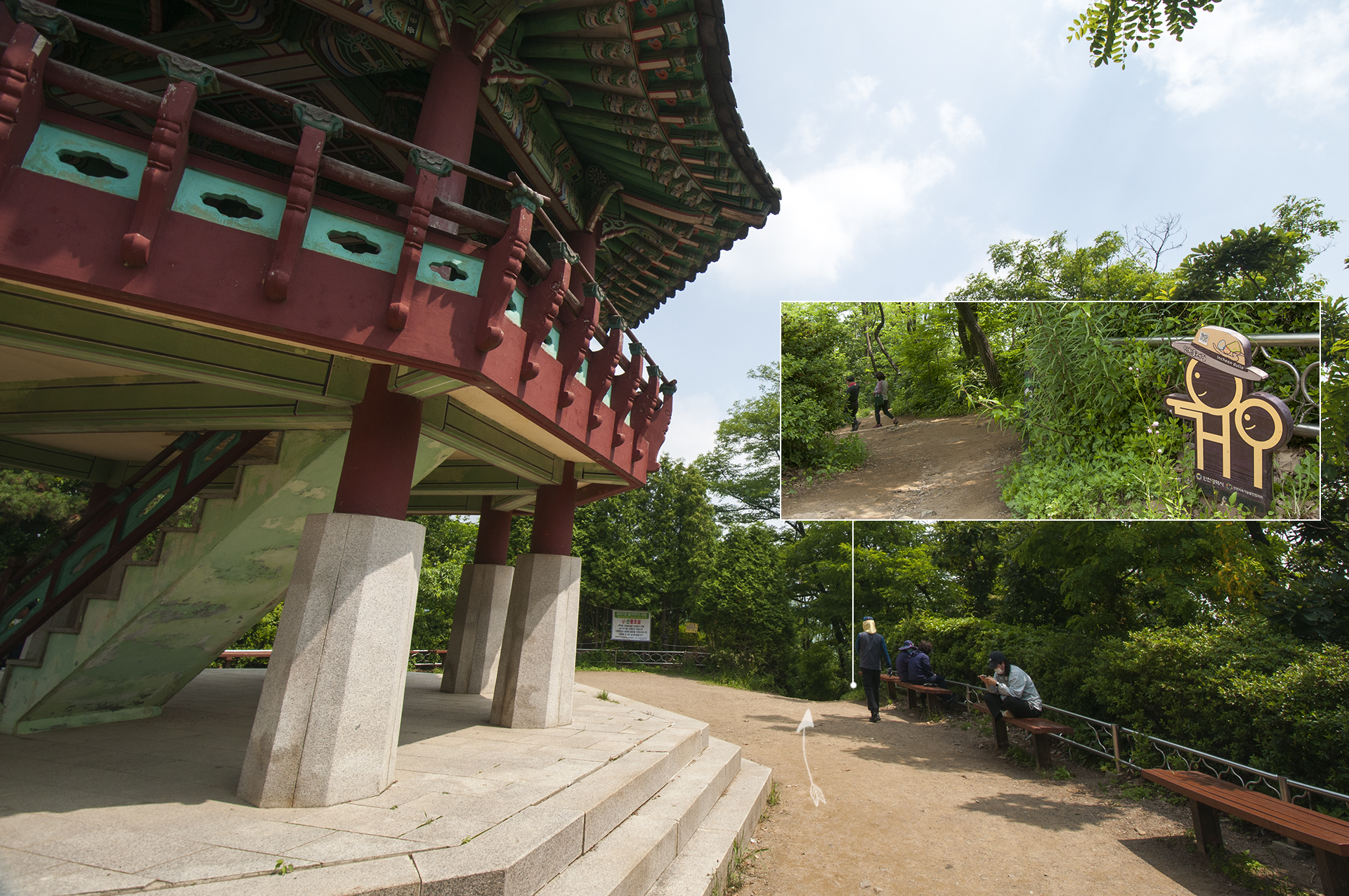 팔각정(원적정)으로 올라가는 갈림길에서 그대로 직진하면