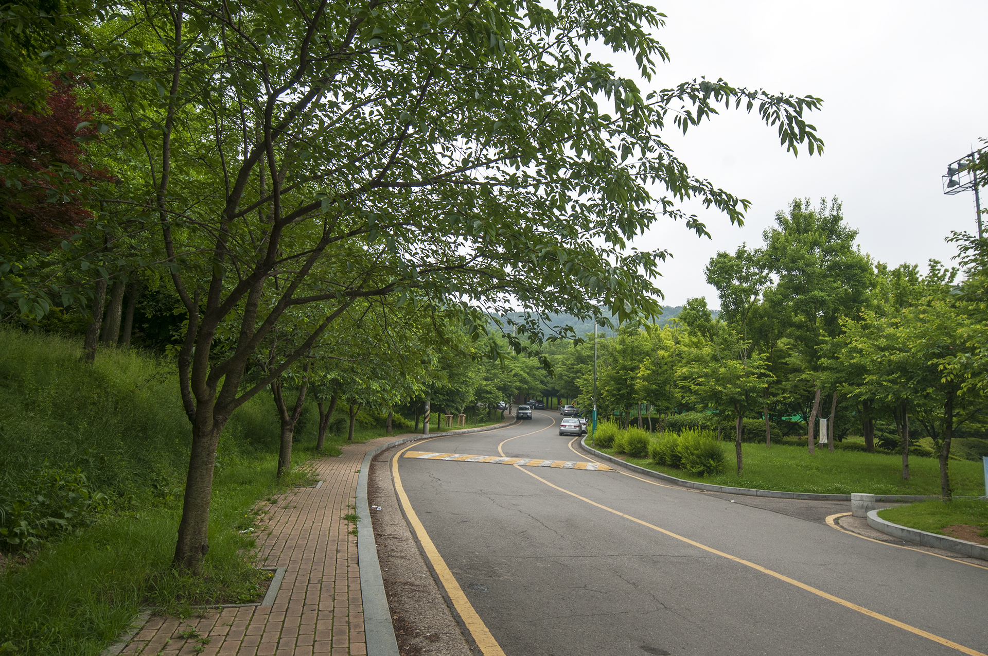 남문을 지나면 인도가 없어진다. 차도 길가로 조심해서 걸어 체육공원 방향으로 직진한다.