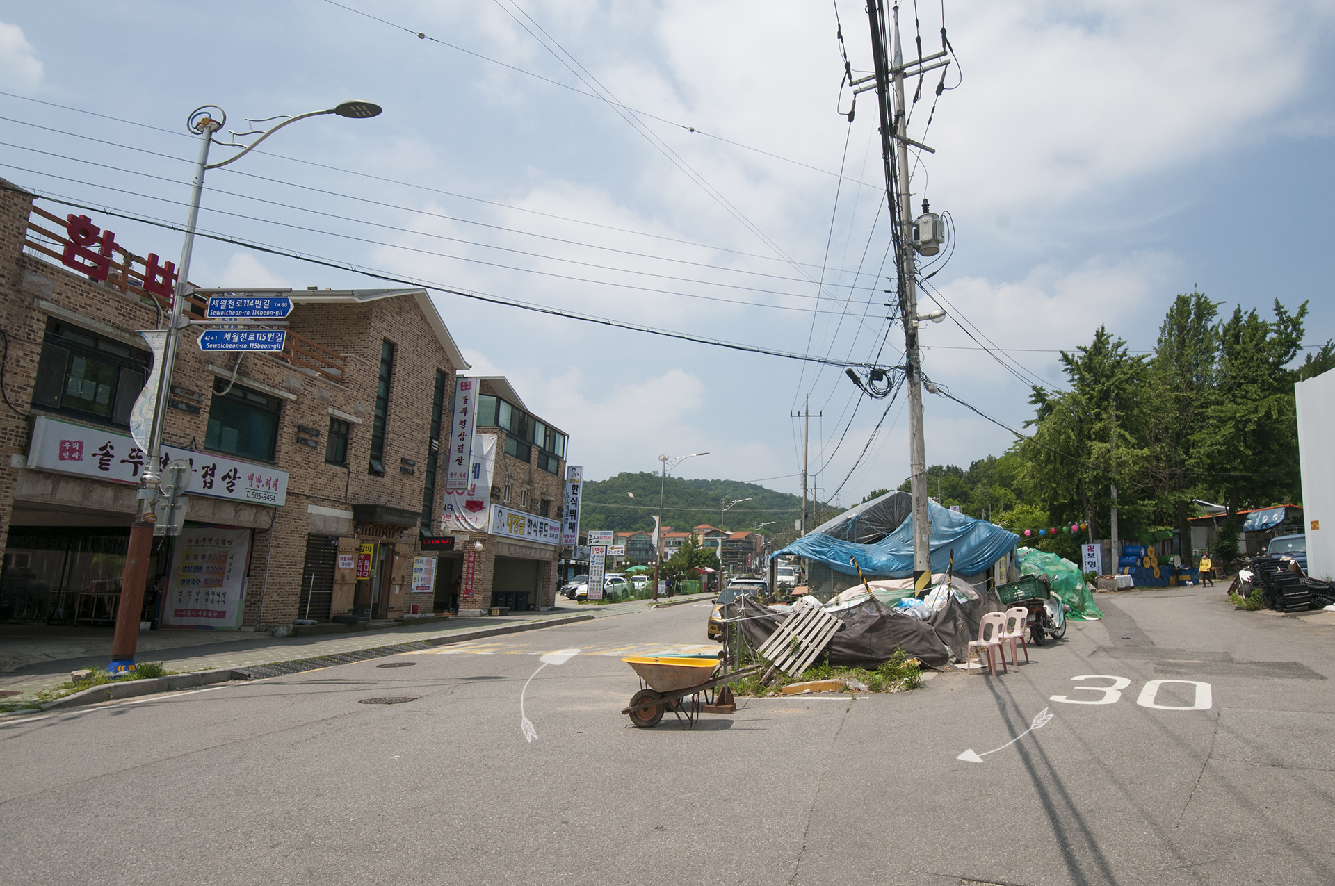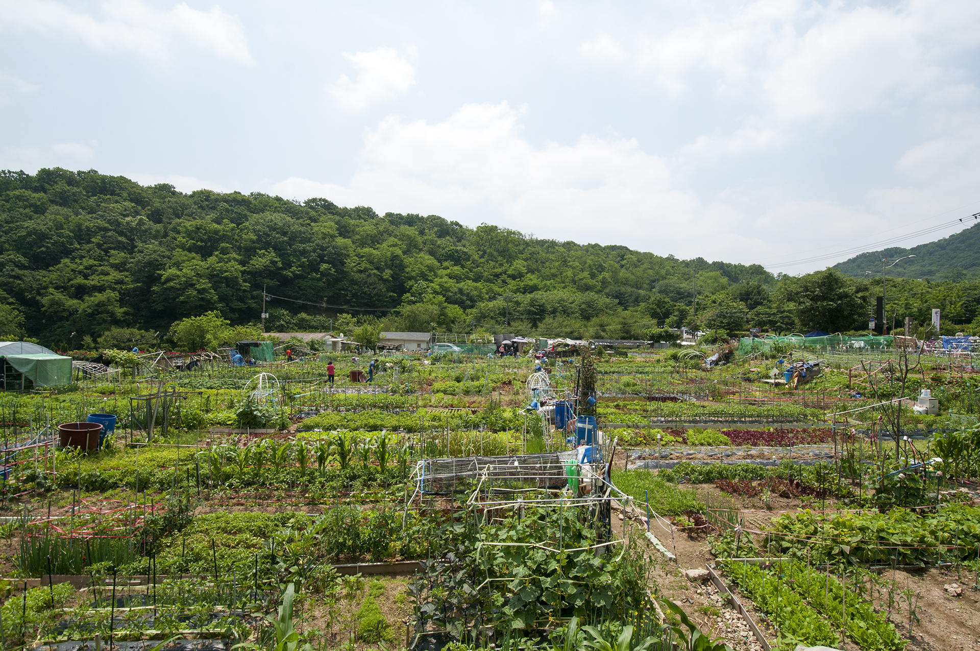 길가 식당 앞을 걸을때면 맛난 전골냄새가 코를 자극한다. 좌측편에 운영중인 주말농장도 볼수있다.