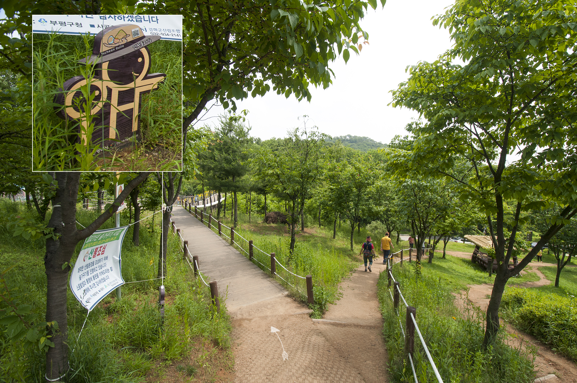 둘레길 로고가 뒷쪽 나무에 매달려 있으니 주의깊게 살펴보자
