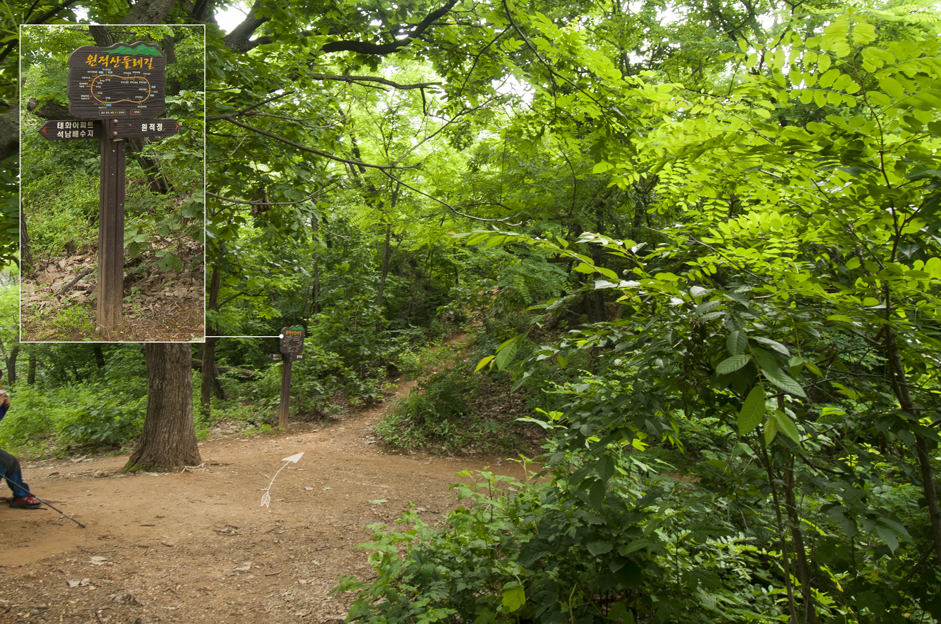 "여기가 다 둘레길이죠, 일로 가도 원적산이고, 절루 가도 원적산이고~ㅎㅎㅎ"