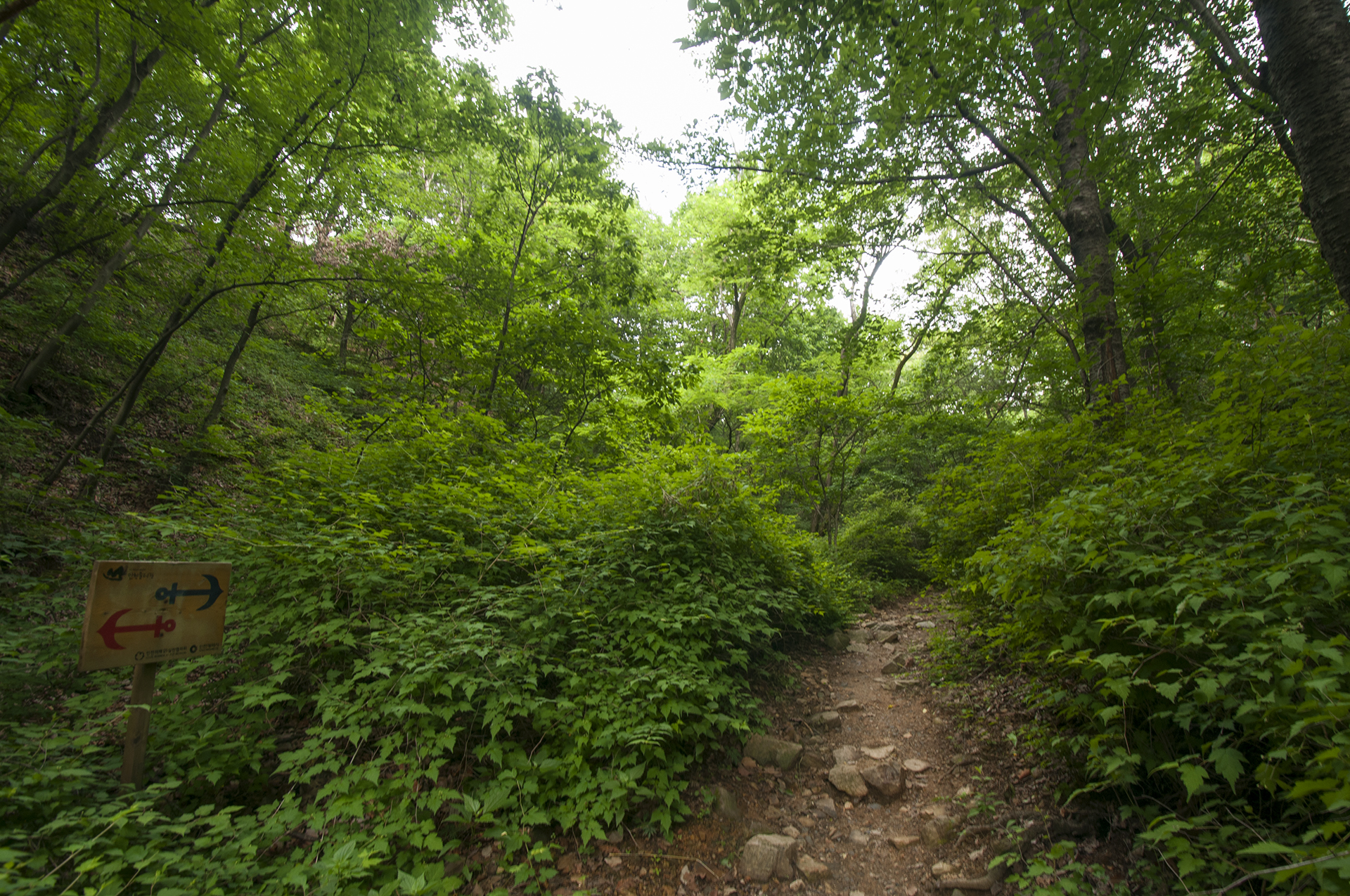 정상으로 올라가는 넓은 등산로와 만나게 된다.