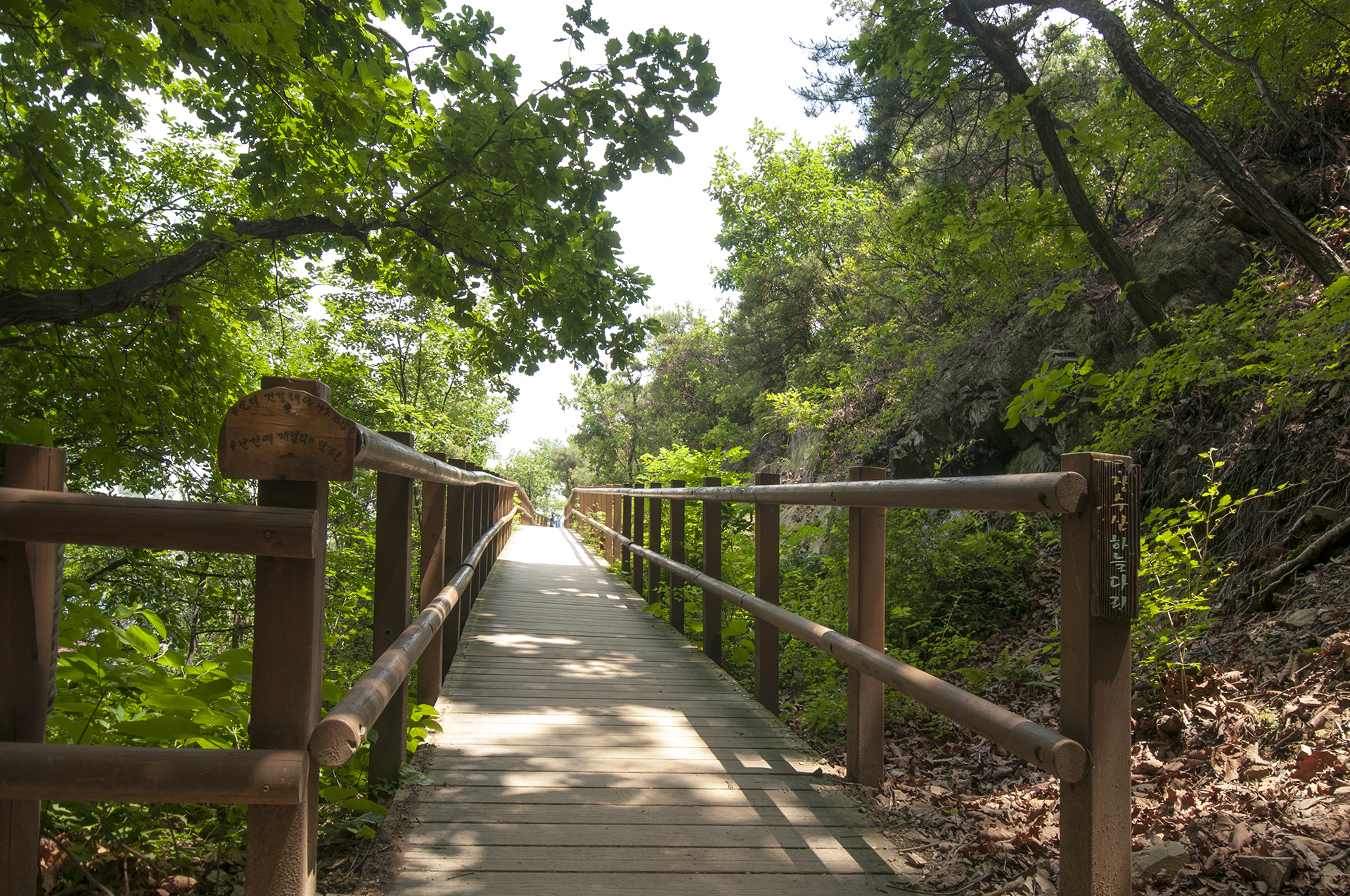 암석으로 인해 좁고 위험했던 산길에 데크다리를 설치해 누구나 안전하게 산을 이용할수 있도록 조성되었다.