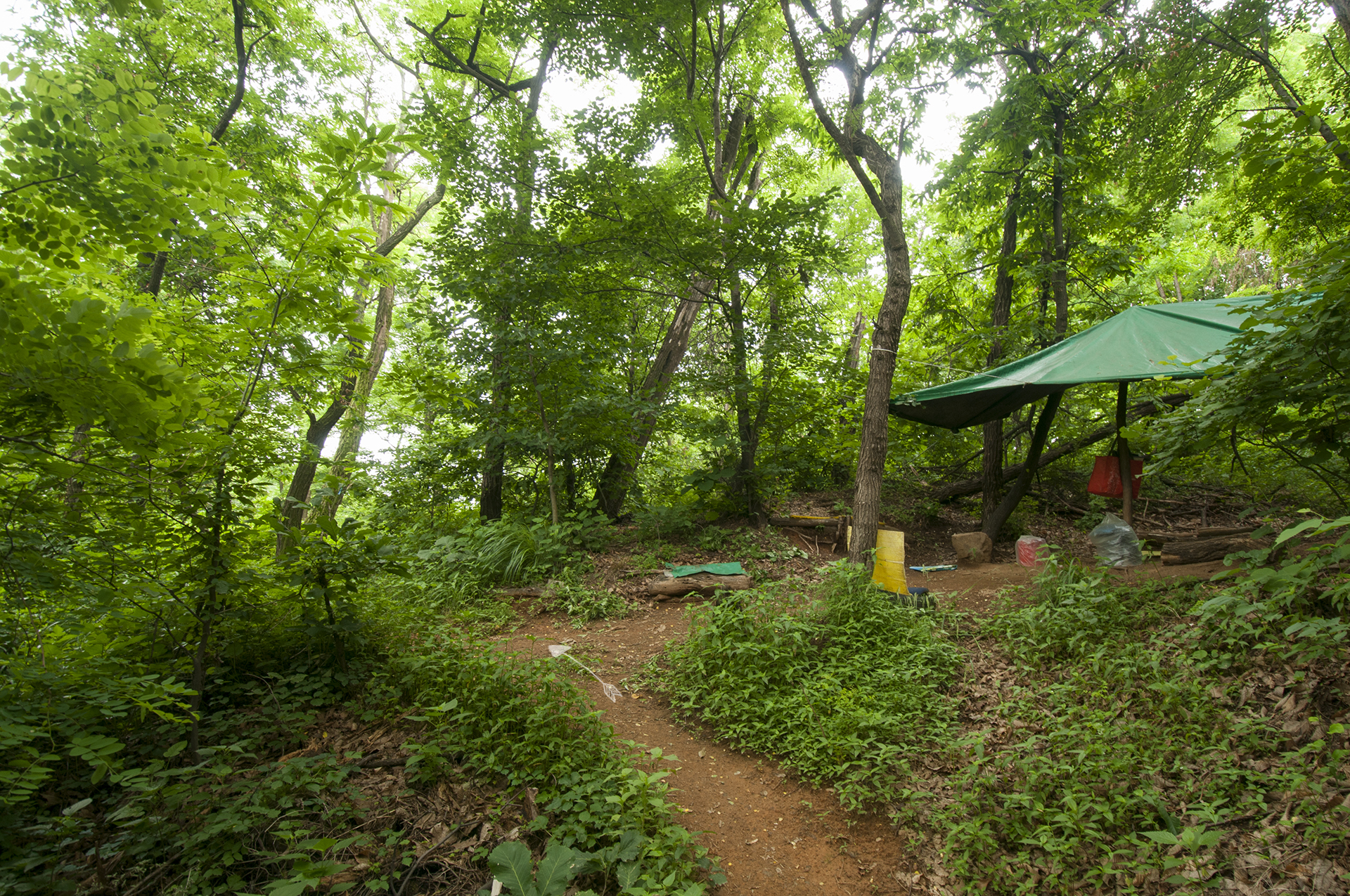 에어건이 설치되어 있는 장소가 나온다. 이곳에서 숲을 벗어나 인도로 나가야 한다.