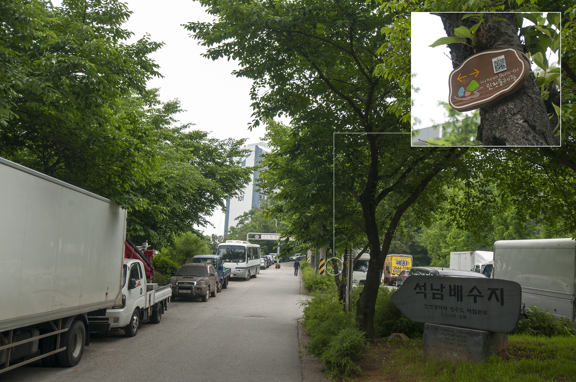 우측으로 태화아파트가 보이고 입구에 석남배수지 안내석이 보이면 그 길로 들어선다.