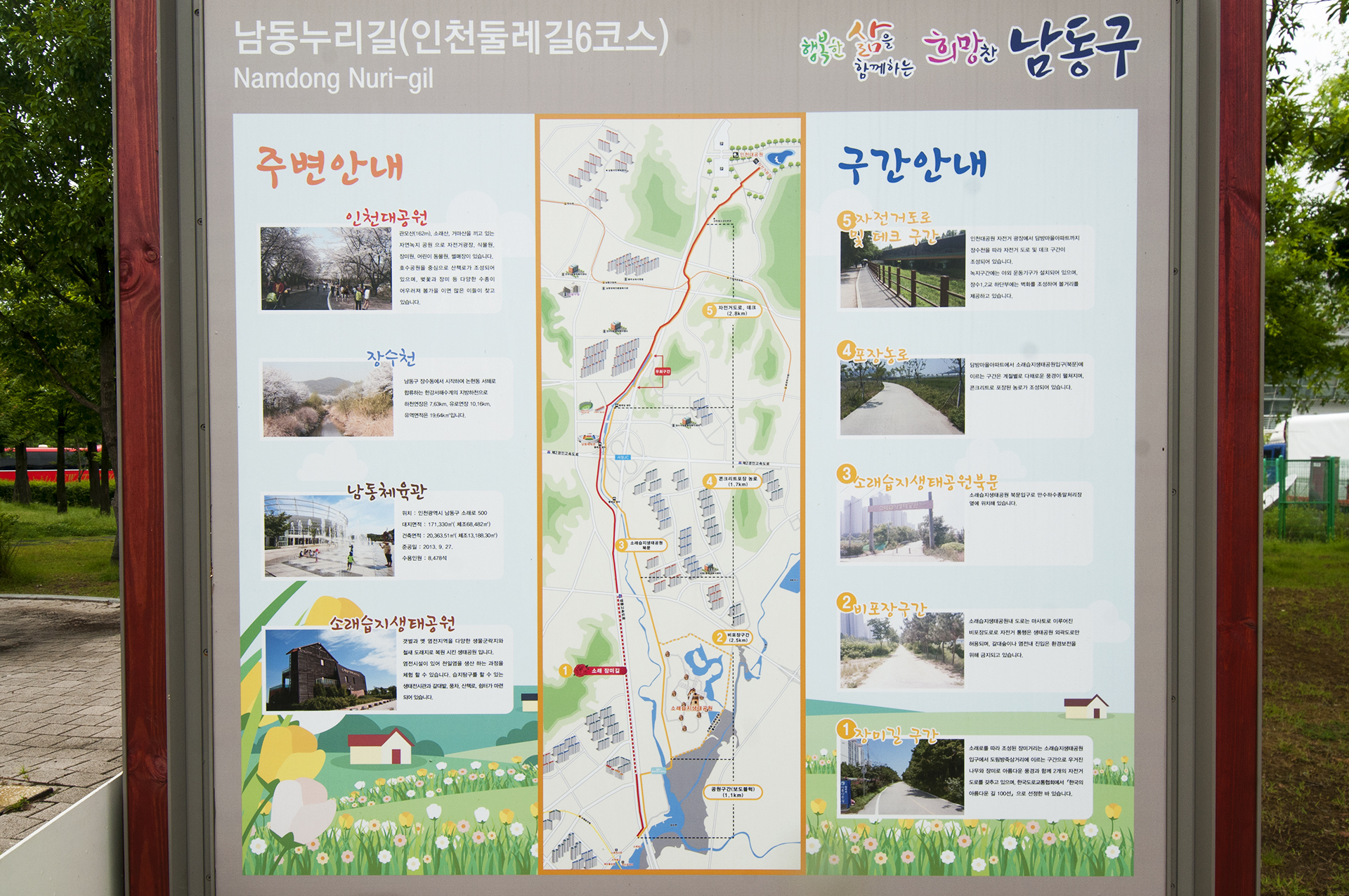 남동구 주요 관광지가 소개되어 있고, 둘레길중 4개 코스가 남동구에 속해 있었다.